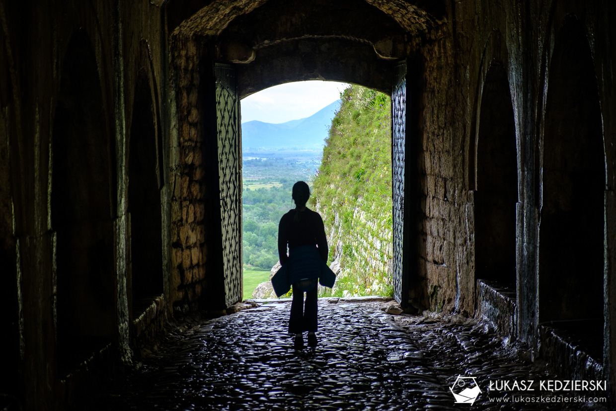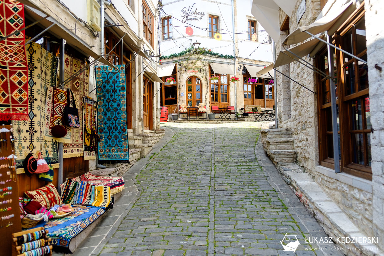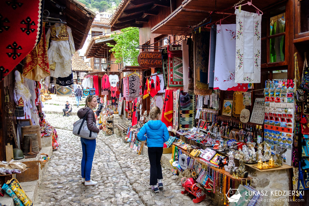 Główne uliczki prowadzące do zamku, to bazar rękodzieła i pamiątek. Sprzedawcy zupełnie nie nagabują, a zawsze chętnie wytłumaczą i pokażą co i jak. Nad całością góruje wspaniały zamek. Podobno jeden z najlepiej zachowanych zamków w całej Albanii. Super móc kręcić się po okolicznych pomieszczeniach i podziwiać otaczające nas krajobrazy.