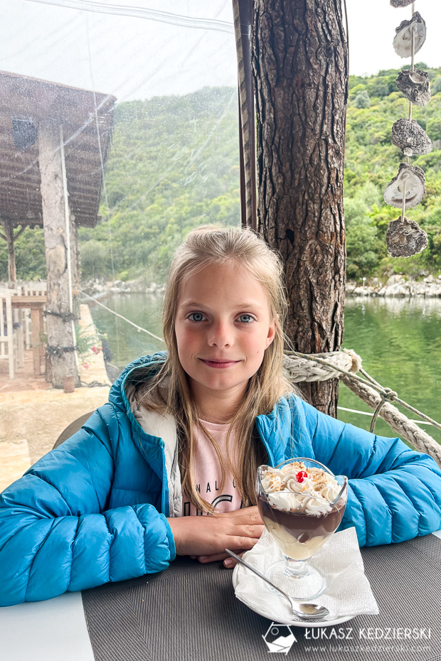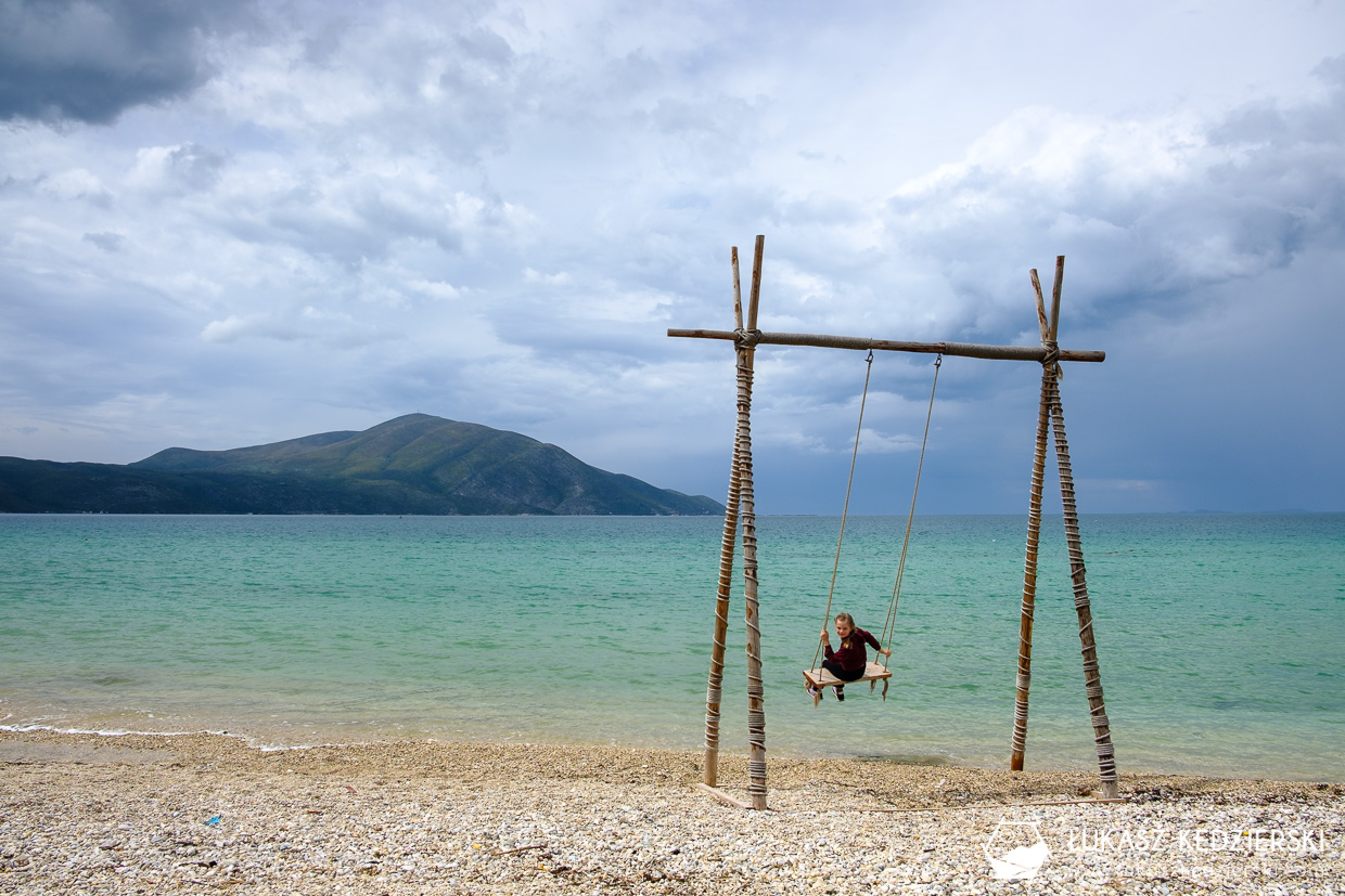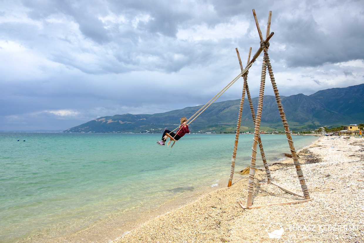 Dojechaliśmy do Orikum Beach. Trochę padało, więc schowaliśmy się w knajpce przy samej plaży. Pyszne owoce morza i spaghetti. Po jedzonku słońce wyjrzało zza chmur i poszliśmy na plaże. W sezonie podobno dzieje się tu. Tłumy i wrzaski wczasowiczów. A teraz? Cisza spokój, brak ludzi. Tylko woda trochę zimna. No i słońce trochę dzisiaj chowało się za chmurami. Nadia znalazła dużą huśtawkę, z której ciężko było ja ściągnąć. Ale pojechaliśmy dalej…