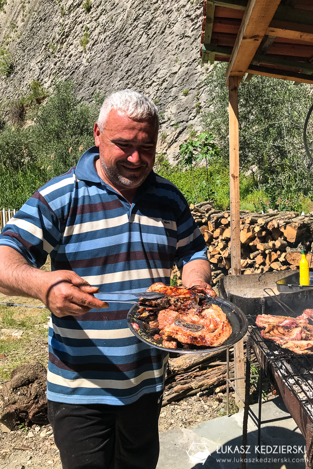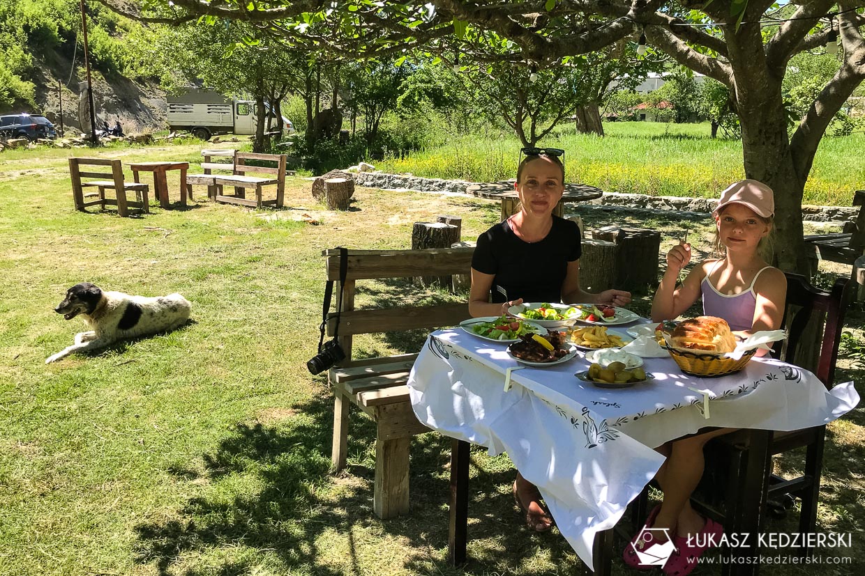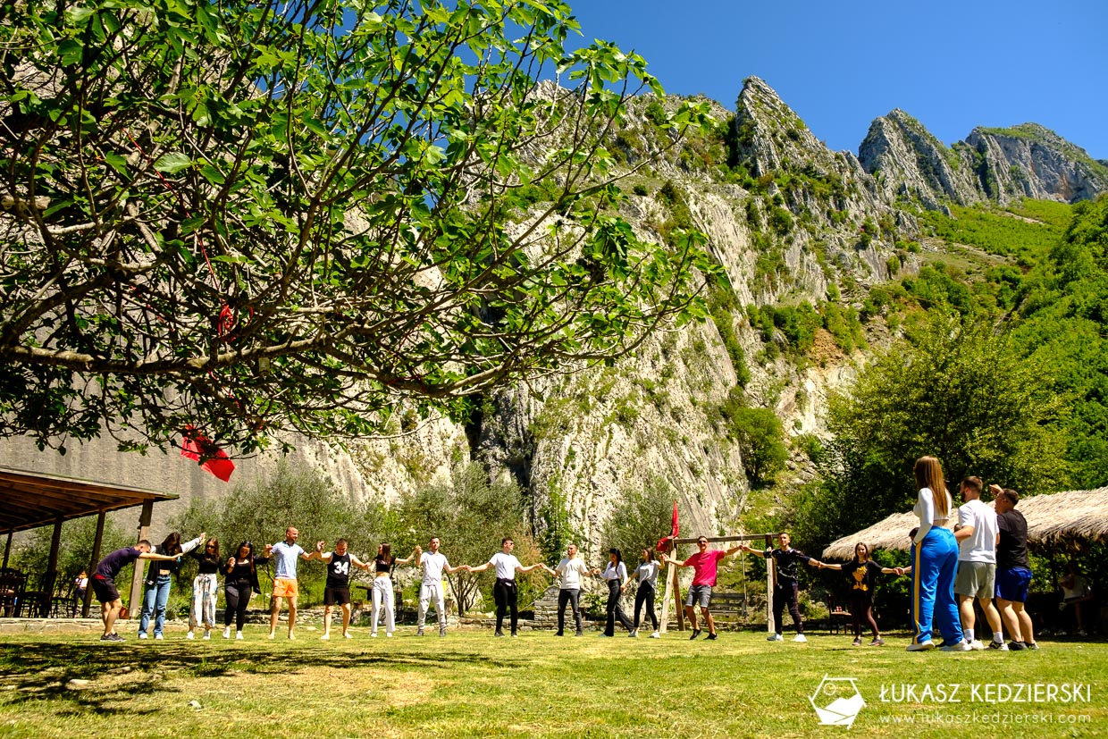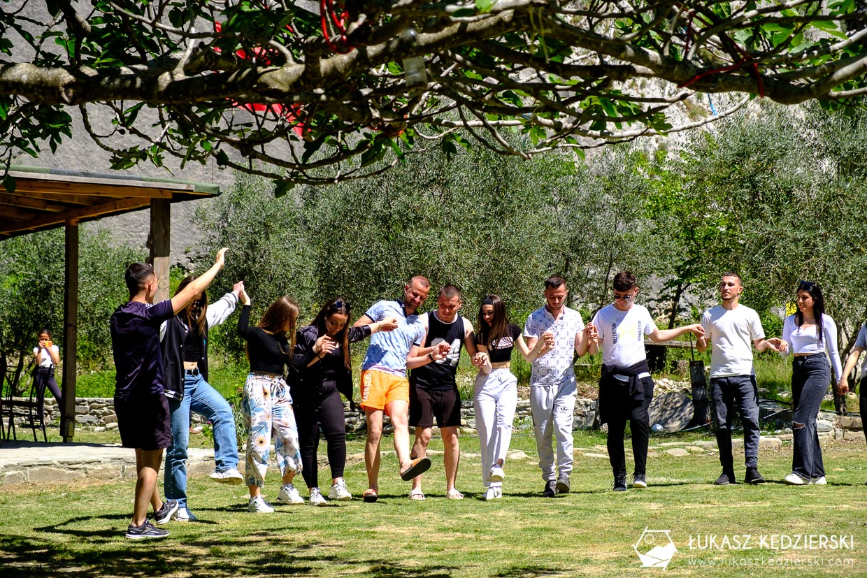 Przed wejściem do Kanioni i Holtës jest parking i niewielka knajpka. Trafiliśmy na małą imprezę. Zakończenie szkoły. Albańska muzyka, tance i śpiewy. Ależ ta młodzież się bawiła. Nie było obciachem wspólne, tradycyjne tańce i śpiewanie. Piękna sprawa.