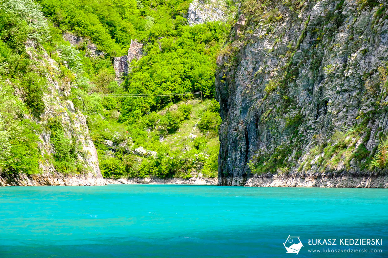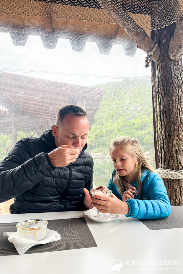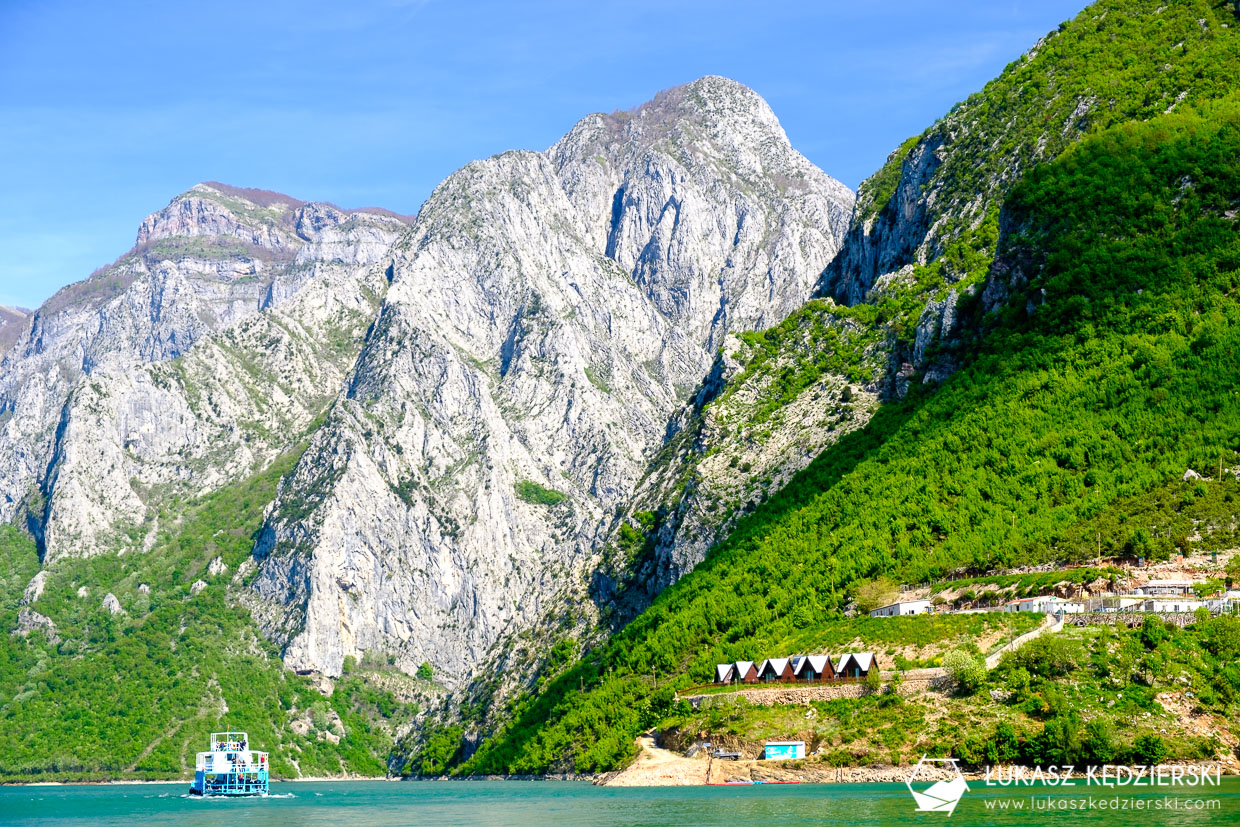 Rano wybraliśmy się nad jezioro Komani. Opcje mieliśmy dwie: prom w dwie strony lub jednodniowa wycieczka i aktywności. Wybraliśmy wersje nr dwa, czyli rejs przez malownicze jezioro i wycieczka. Kluczowa jest tu pogoda, bo tylko przy słonecznej aurze, kolory wody i okolic są iście przepiękne.
