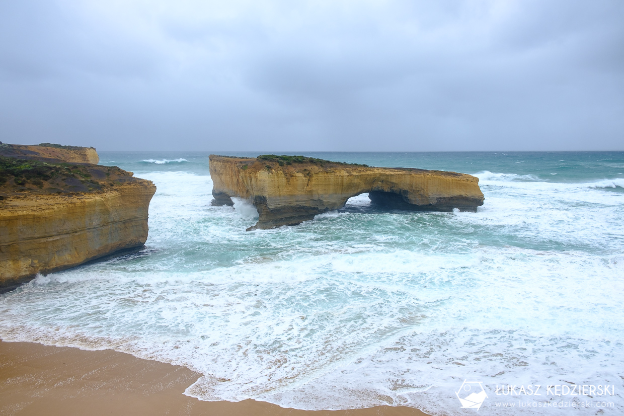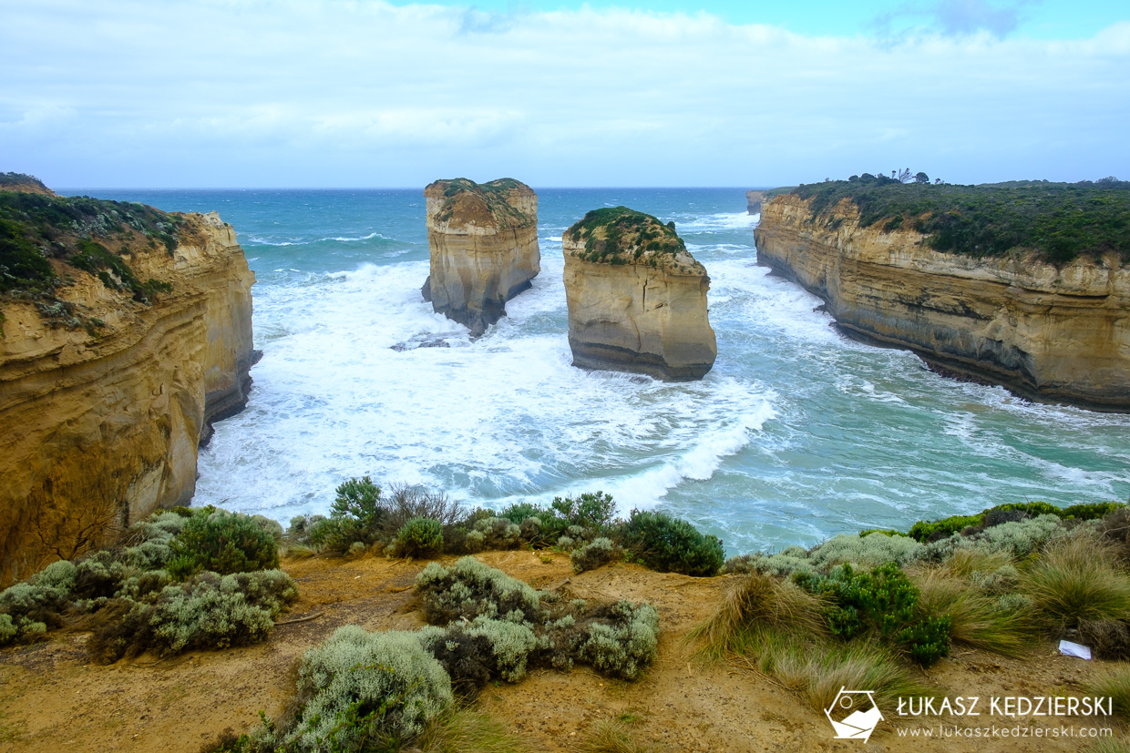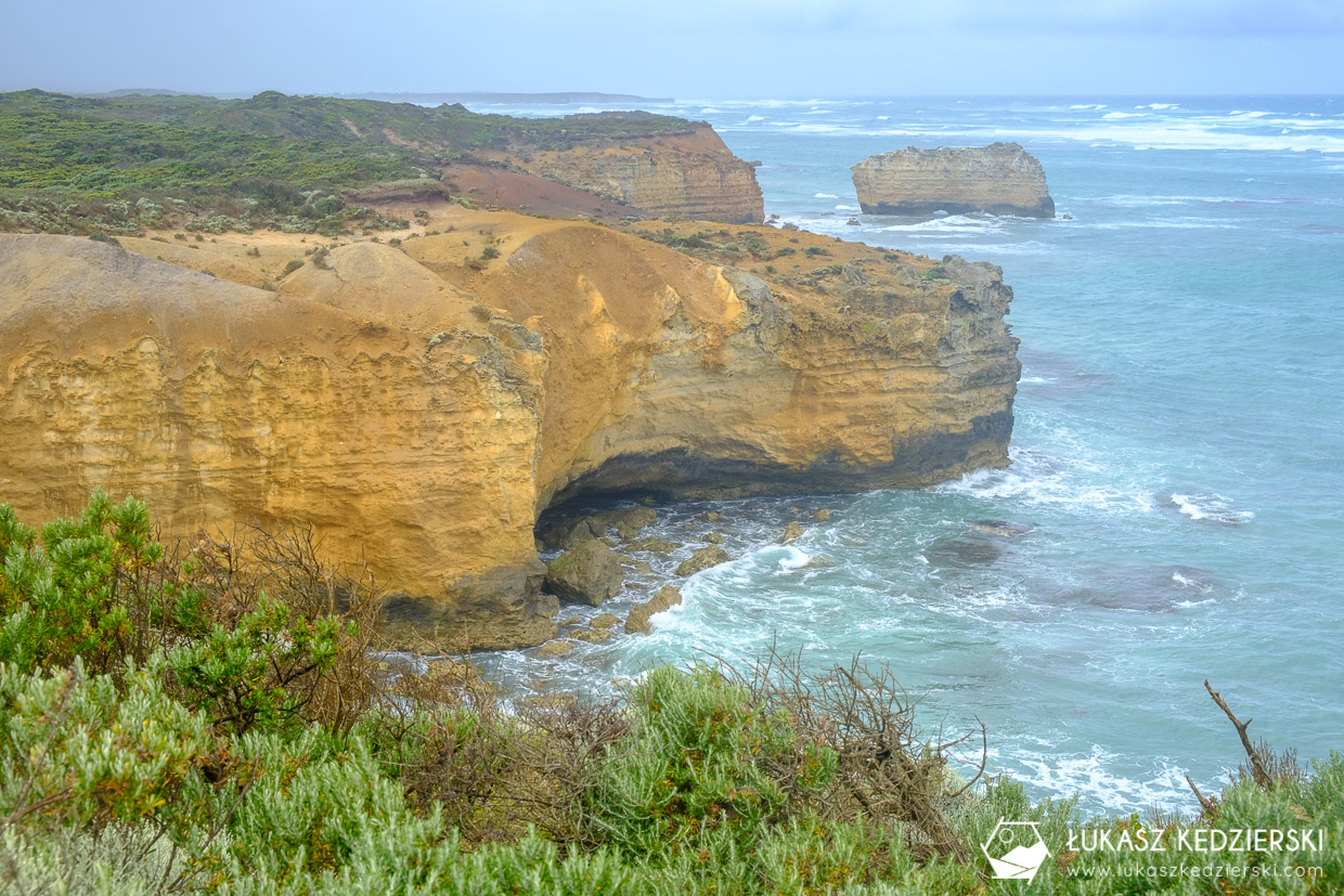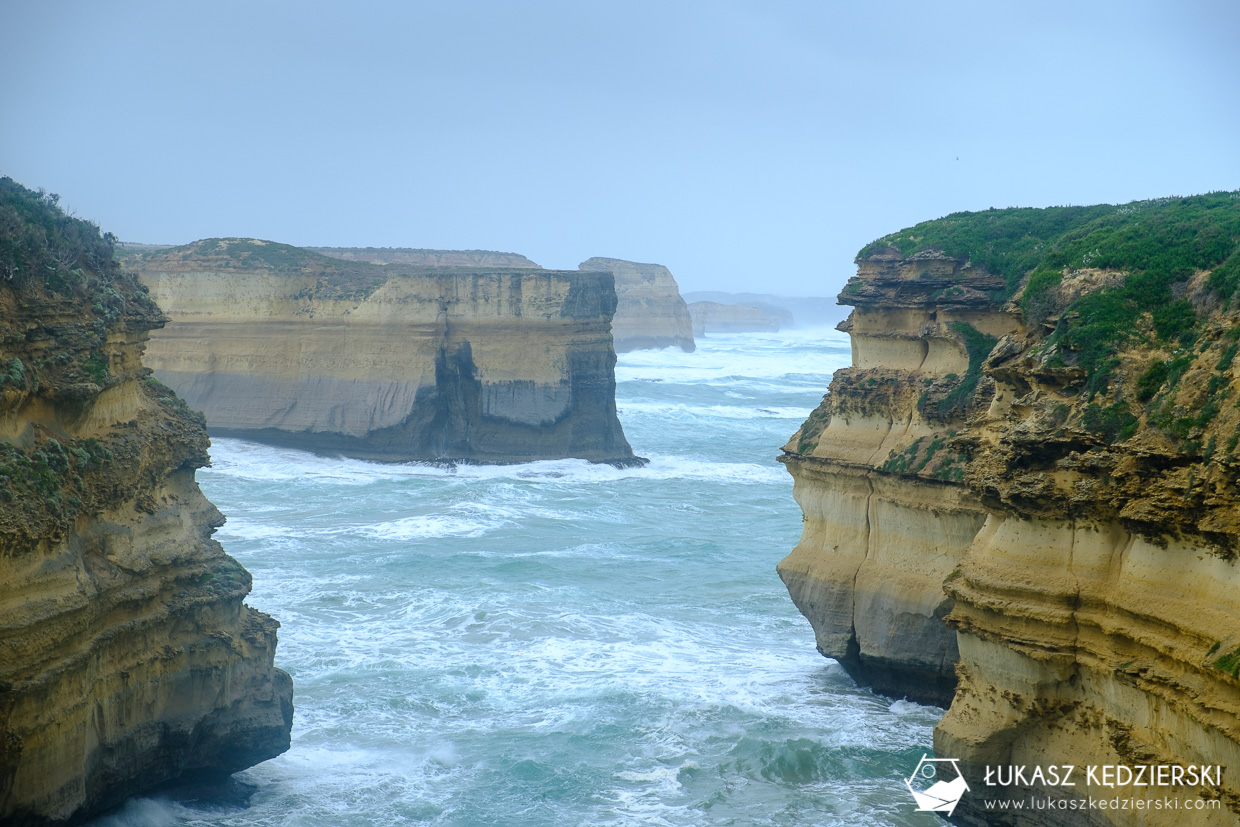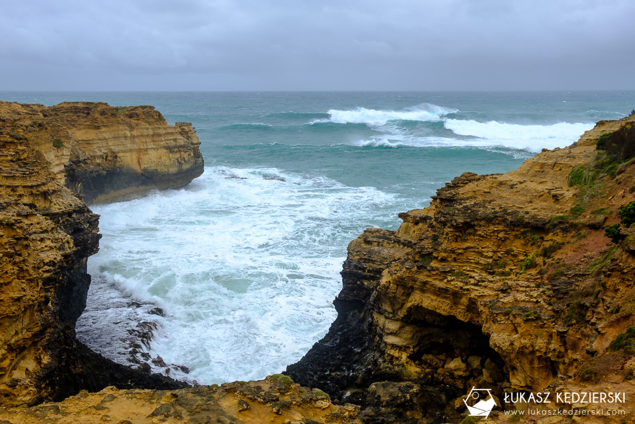 To ostatnie miejsce, jakie zobaczyliśmy na słynnej Great Ocean Road. Ubolewamy nad tym, że widzieliśmy je w bardzo deszczowej scenerii, a widoczność również była mocno ograniczona. Wyobrażamy sobie, że w pełnej krasie jest niesamowita. W tle majaczą wapienne mini wysepki, do tego poszarpana linia brzegowa, fale i kolor wody. Brzmi jak miejsce z niezliczoną ilością kadrów do zarejestrowania.