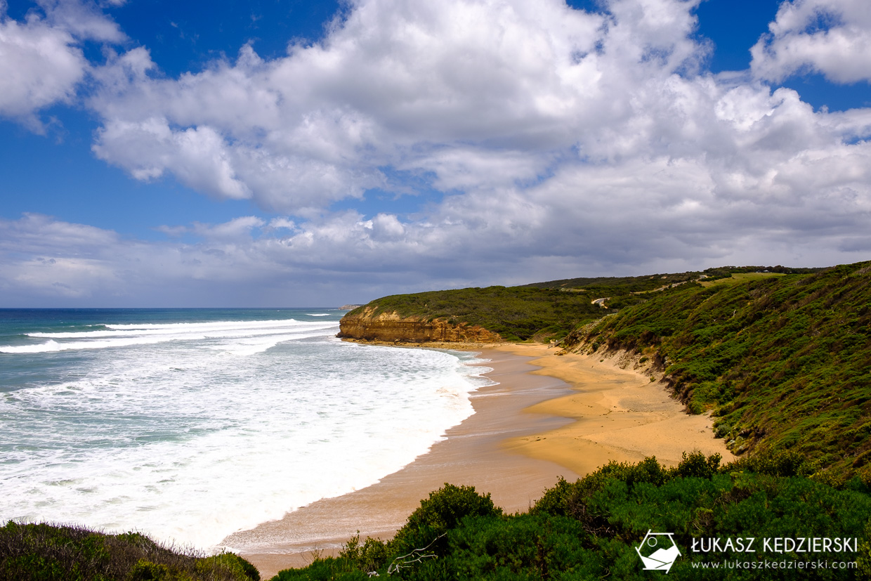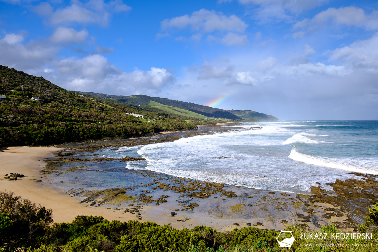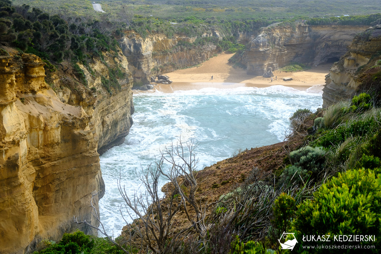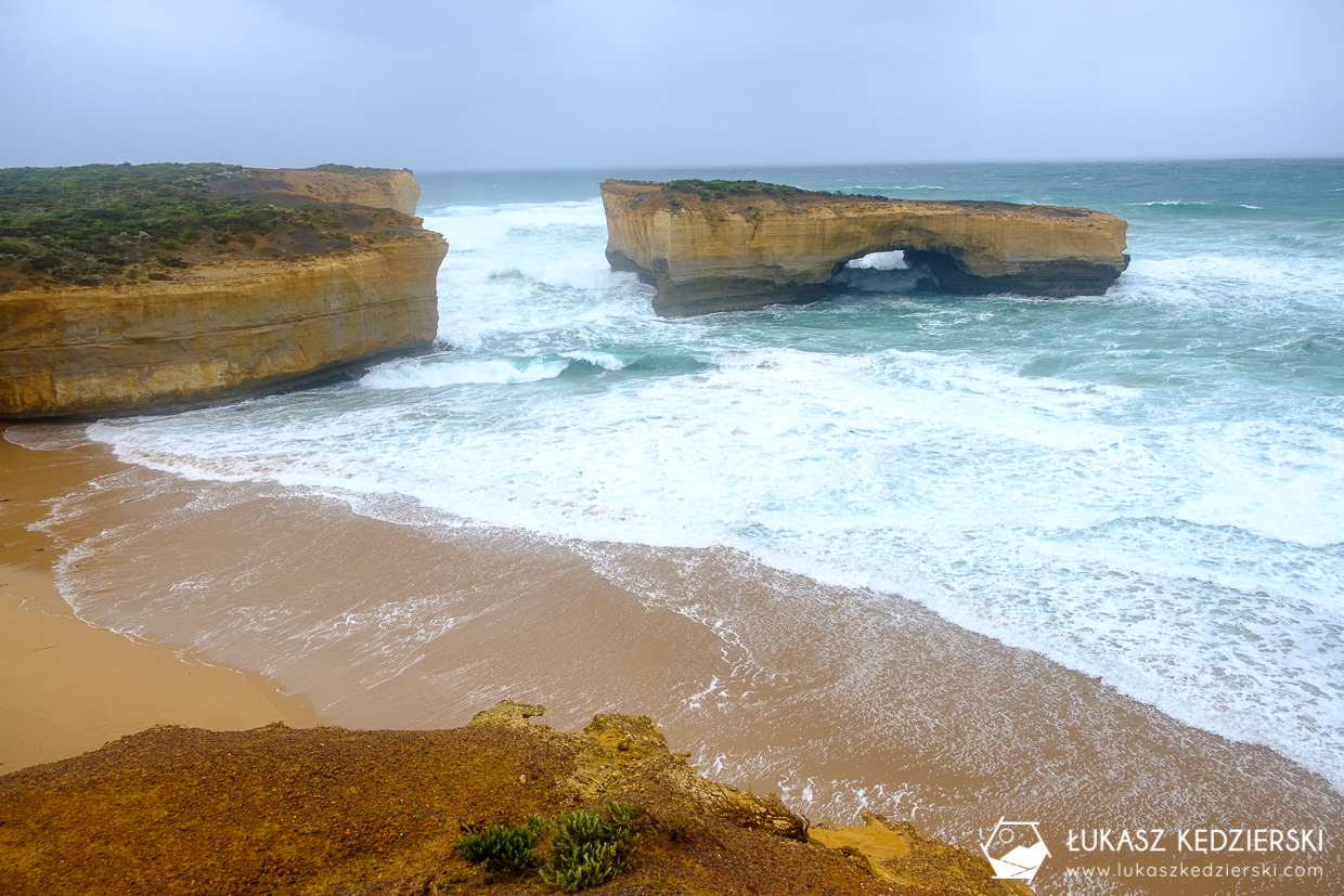To ostatnie miejsce, jakie zobaczyliśmy na słynnej Great Ocean Road. Ubolewamy nad tym, że widzieliśmy je w bardzo deszczowej scenerii, a widoczność również była mocno ograniczona. Wyobrażamy sobie, że w pełnej krasie jest niesamowita. W tle majaczą wapienne mini wysepki, do tego poszarpana linia brzegowa, fale i kolor wody. Brzmi jak miejsce z niezliczoną ilością kadrów do zarejestrowania.