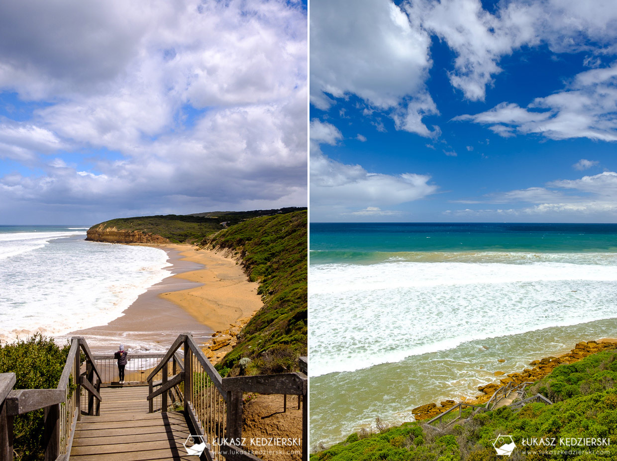 Znajdujemy się w przepięknym miejscu. Kolejny bardzo malowniczy punkt widokowy na szczycie potężnego klifu, z którego możemy podziwiać dwie skały Gog i Magog. Przy dobrych warunkach pogodowych w tym miejscu możemy zejść po 86 schodach na plażę. Niestety tym razem schody były zamknięte, przez co, nie mogliśmy udać się na plażę. Szkoda, bo tą plażą można podejść kawałek dalej i zobaczyć następny punkt naszej wycieczki po Great Ocean Road.