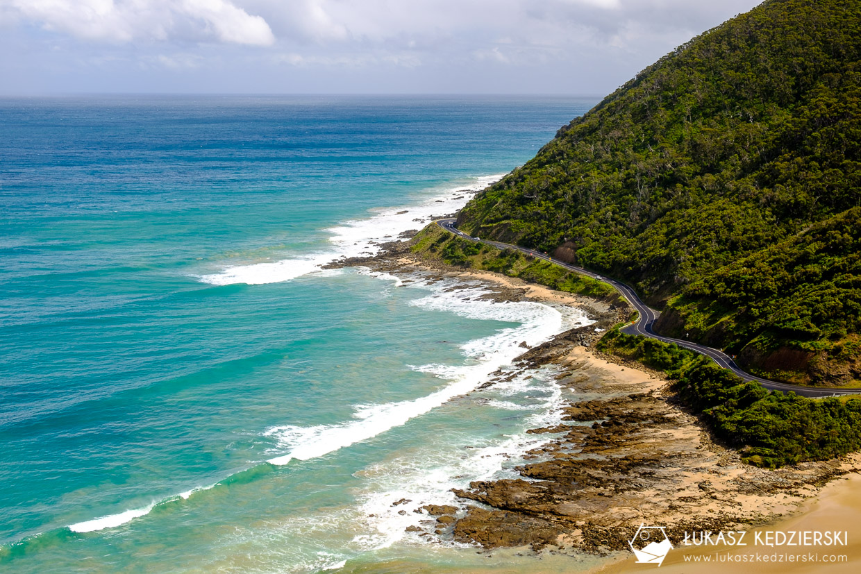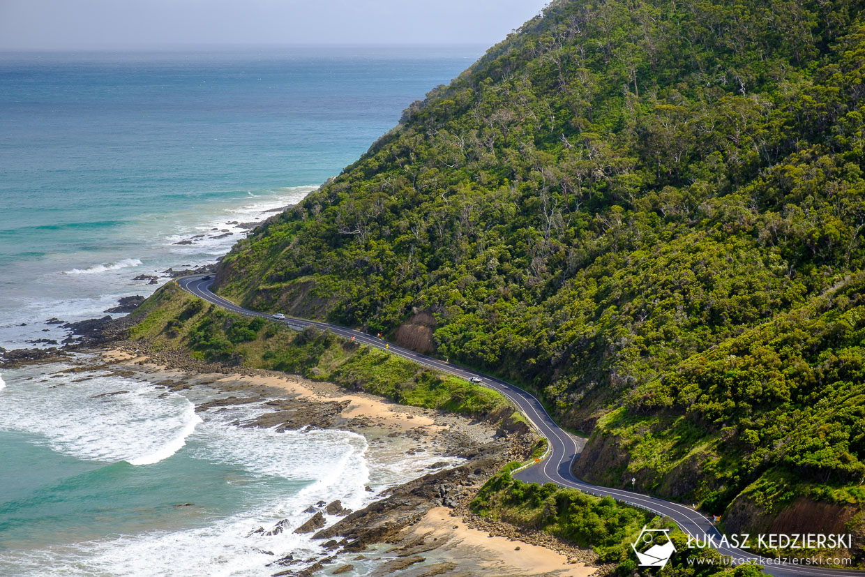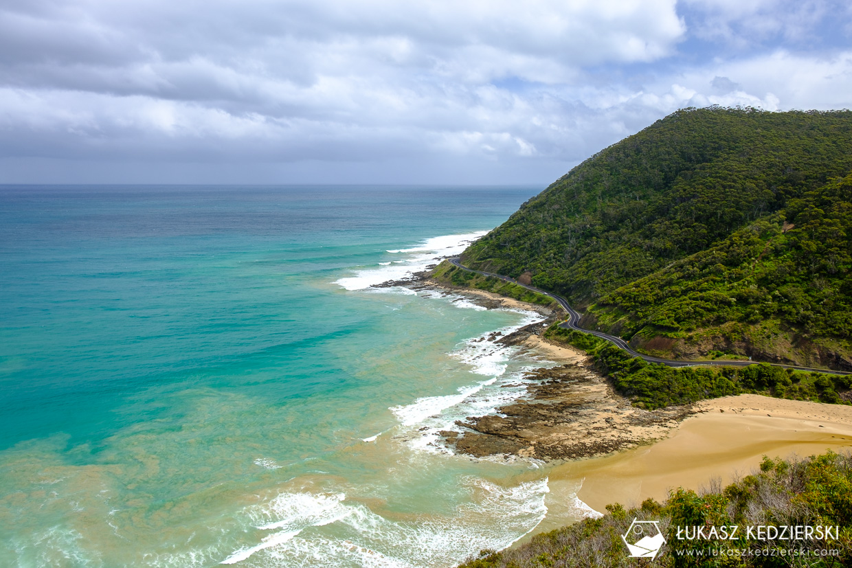 Odbijamy od głównej drogi lekko w głąb lądu, aby podjechać stromymi ulicami na parking. Z niego udamy się na malowniczo położony punkt widokowy Teddy’s Lookout. Z tego miejsca przepięknie widać niewielki fragment czekającej nas trasy. Wiele relacji podaje, że odcinek Great Ocean Road pomiędzy Lorne, a Apollo Bay jest najbardziej malowniczy. Zaraz się o tym przekonamy.