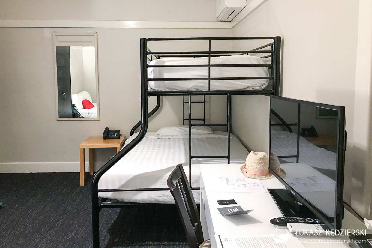 Kolejny nocleg w Melbourne, który bardzo nam się podobał. W SmartStay Melbourne mieliśmy do dyspozycji średniej wielkości pokój z 2 łóżkami (w tym jedno piętrowe) z dużą łazienkę z kosmetykami. Na wyposażeniu pokoju był czajnik oraz kawa i herbata. Wszędzie bardzo czysto i ładnie.
