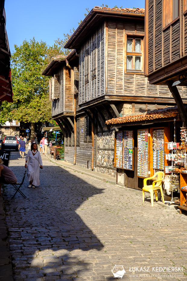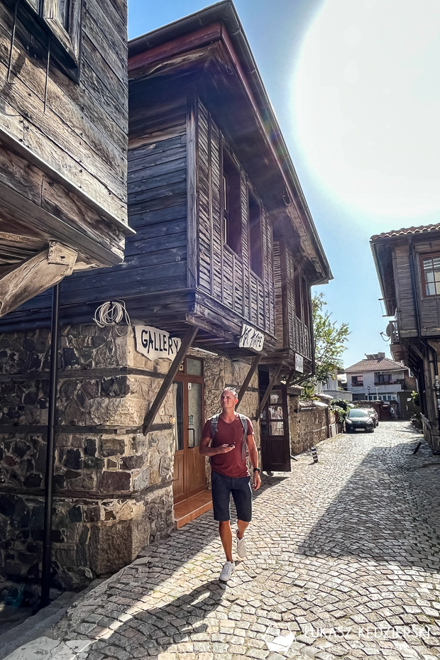 Sozopol przypomina Nesebyr. Również jest podzielone na starą i nową część. Możemy zapuścić się w jego wąskie uliczki i pomyszkować po sklepach z rękodziełem, pamiątkami, czy wskoczyć gdzieś na bułgarskie jedzenie. Tutaj również budynki na dolnych piętrach są kamienne, betonowe, a górne piętra to najczęściej drewniane wykusze. Niestety Sozopol jest jednak trochę bardziej „zabałaganiony” nowymi budynkami, które już nie wpisują się w dawną architekturę. Nie ma tu takiej spójności budynków i jednego klimatu. Jednak i tak bardzo ciekawie się prezentuje.