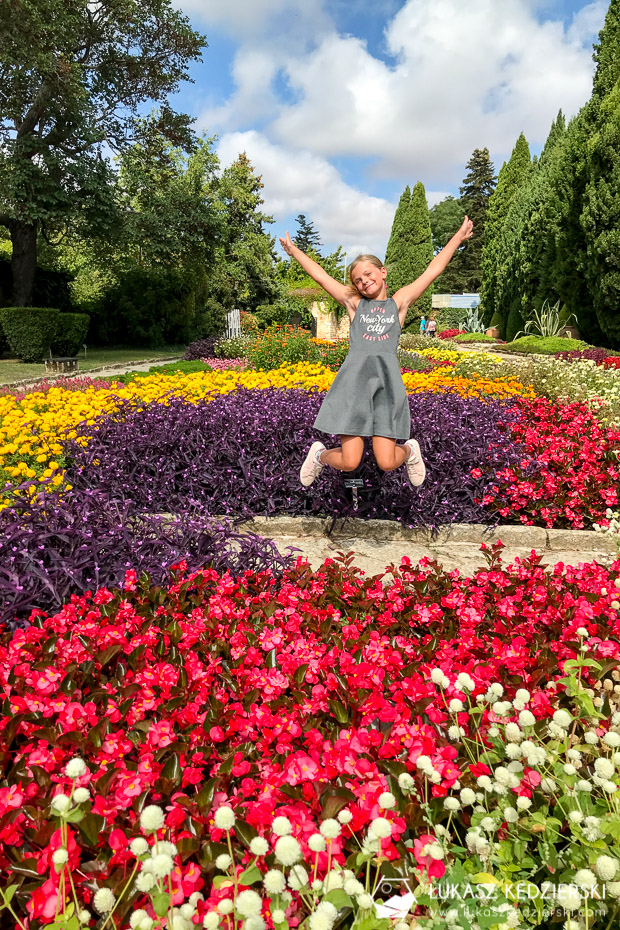 Czy są tu jacyś miłośnicy kwiatów i kaktusów? Jeżeli tak, to na pewno nie będą zawiedzeni. Pierwszym punktem programu przez północne wybrzeże Bułgarii jest ogród i pałac. Ogród ten skupia ponad 3500 różnych gatunków kwiatów, krzewów i drzew. Możemy tu podziwiać drugą pod względem wielkości kolekcję kaktusów w Europie (pierwsza znajduje się w Monako). Podobno powodem powstania tego miejsca, była miłosna historia rumuńskiej królowej Marii Koburg, która potrzebowała cichego zakątka na schadzki ze swoim tureckim kochankiem. Historia niczym z Harlequiem prawda? Teren ten tak bardzo jej się spodobał, że postanowiła wybudować tu swoją letnią rezydencję. Pałac i okoliczne budynki zaprojektowali włoscy architekci Amerigo i Agostino, natomiast ogrodem zajął się szwajcarski specjalista Jules Janine.