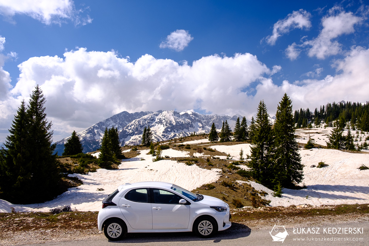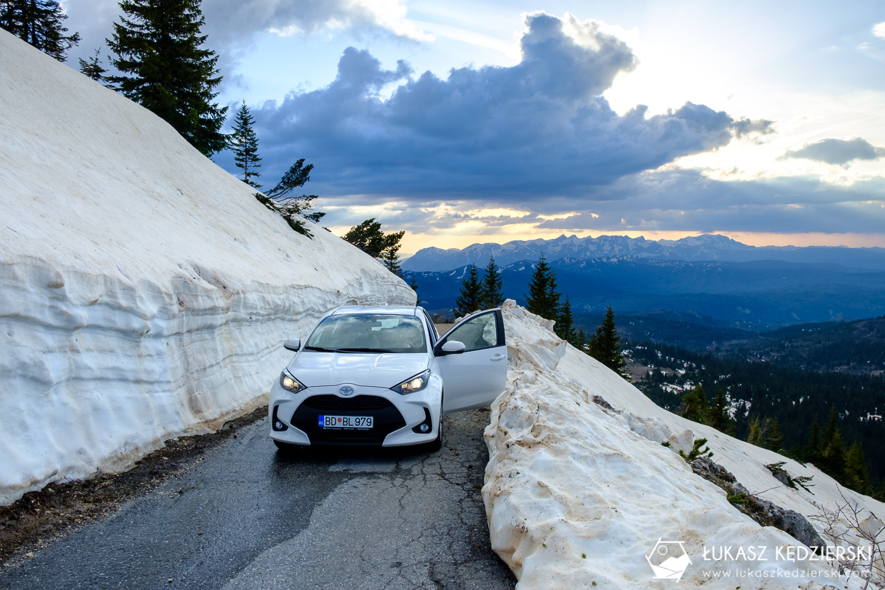 Na cały nasz pobyt w Czarnogórze wypożyczyliśmy niewielki samochód. Skorzystaliśmy z oferty naszych znajomych z bloga hvala.pl, którzy pośredniczą w wypożyczeniu samochodu z jednej z czarnogórskich firm. Jest to wypożyczenie samochodu bez wkładu własnego, bez karty kredytowej, bez blokowania środków na niej z pełnym ubezpieczeniem. Otrzymaliśmy samochód marki Toyota Yaris z automatyczną skrzynią biegów. Był praktycznie nowy – na liczniku było niewiele ponad 2000 km, a odbiór i jego zwrot trwał dosłownie 2-3 minuty. Samochód z pełnym ubezpieczeniem na cały pobyt, czyli 7 dni kosztował nas 263 EUR.
