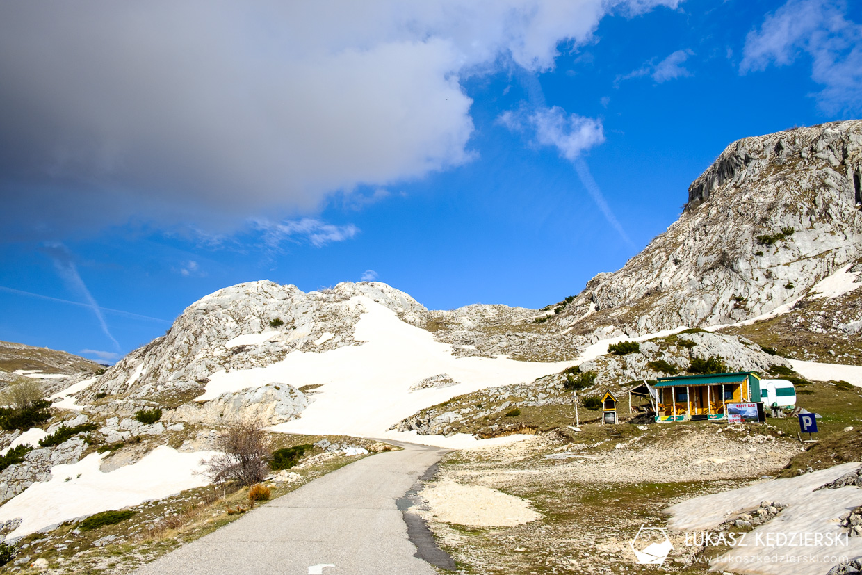 Człowiek jedzie i ogląda niesamowite widoki. Co chwilę zatrzymuje się, aby zrobić kolejne zdjęcie. Można zgłodnieć prawda? Wpadliśmy na chwilkę na drobną przekąskę, ale chcieliśmy spróbować lokalnego sera i prśut i wyszliśmy objedzeni jak bąki. Prśut to suszona szynka. Okolice gór Lovcen słyną z niej więc przejeżdżając przez Njeguśi musieliśmy się tu zatrzymać i wrzucić coś na ząb. Pychotka.