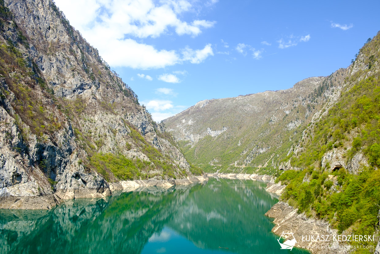 Wybierając się do Czarnogóry, wiedzieliśmy, że musimy pojechać zobaczyć kolory rzeki Pivy. Uwielbiamy takie widoki: szafirowa woda w otoczeniu zieleni i gór. Zdecydowanie wart tu przyjechać, bo widoczki zapierają dech w piersiach. Jadąc wzdłuż rzeki Pivy czeka na nas mnóstwo skalnych tuneli – robią wrażenie i bardzo podobały się Nadii. Dojechaliśmy aż do olbrzymiej tamy wodnej zbudowanej na tej rzece. Stąd jest już tylko kilka kilometrów do granicy z Bośnią.