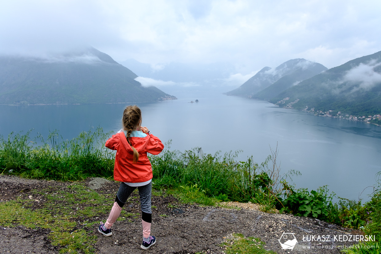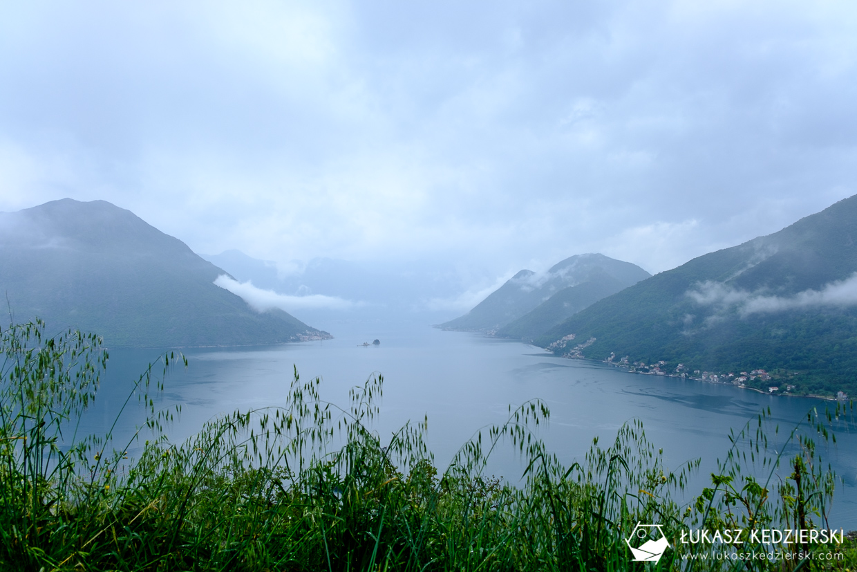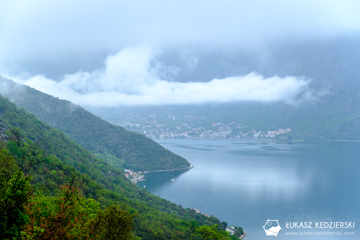 Pierwszy widok na zatokę Kotorską w deszczowej aurze. Wygląda iście tajemniczo i zupełnie inaczej niż znamy ją z licznych zdjęć.
