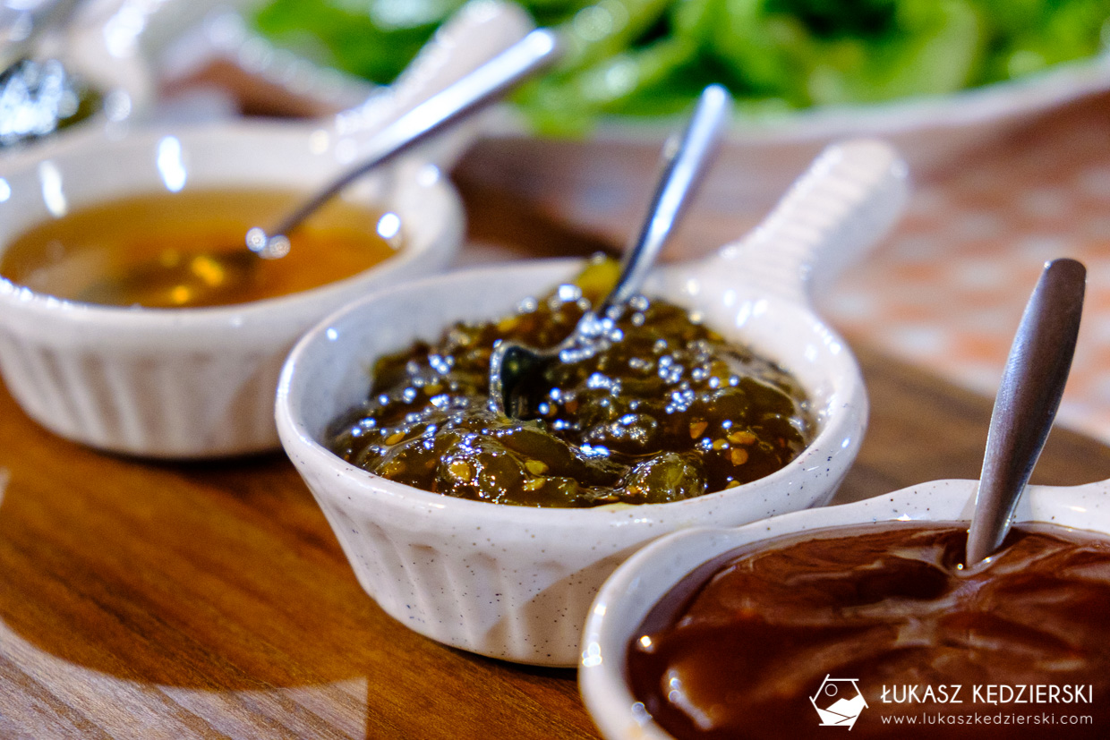 Na sali w starym budynku, który jest w posiadaniu właścicieli od ponad 4 pokoleń, na stół wjechała lokalna szynka, ser, chlebek, tradycyjne pączki, soki z róży, mięty i przepyszne dżemy. Wszystko własnej produkcji, z własnego ogródka i robione przez szefową kuchni.