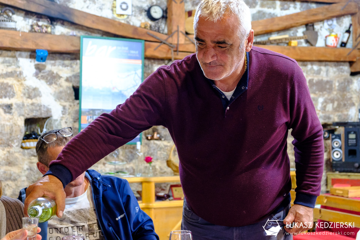 Głowa rodziny Ivo serwował wino słodkie, wytrawne i rakiję w wersji czystej i z ostrą papryczką. Ivo to dusza towarzystwa, kawalarz i polewał od serca, a rakija miała sporo procentów, więc po chwili cała ekipa zaczęła się mocno integrować. Oj jak dobre to wszystko było i jak niechętnie z pełnymi brzuchami i lekko chwiejnym krokiem opuściliśmy piękne miejsce.