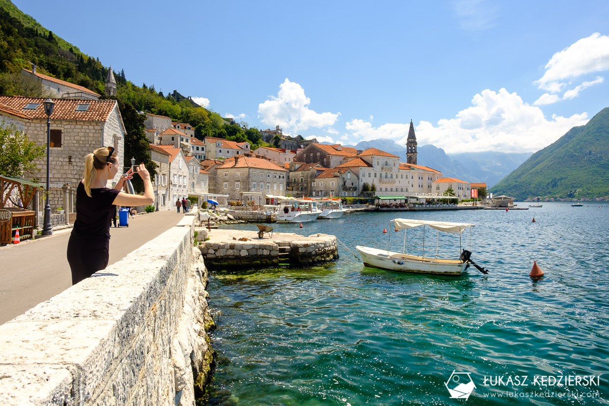 Na początek meldujemy się w miasteczku Perast. Sympatyczne, malutkie miasteczko, liczy niewiele ponad 200 mieszkańców, spójna jednolita zabudowa no i piękne widoczki. Zdecydowanie warto się tu zatrzymać i pospacerować wzdłuż nadbrzeża.
