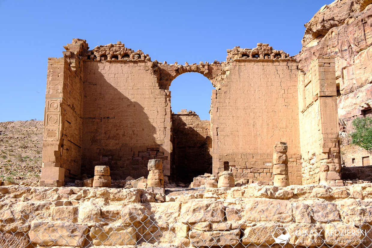 Wchodzimy po dużych schodach do Wielkiej Świątyni, a właściwie do skromnych pozostałości po olbrzymim budynku. Świątynia prawdopodobnie powstała w okolicy I w n.e. W latach swojej świetności zajmowała powierzchnię ponad 7500 m2. Obecnie to ruiny obejmujące zarys pomieszczeń, zakamarki, korytarze, schody i liczne, częściowo zachowane kolumny. Warto wejść tu i przyjrzeć się zdobieniom i płaskorzeźbom z bliska. Szkoda, że tak duży kompleks nie zachował się do naszych czasów.