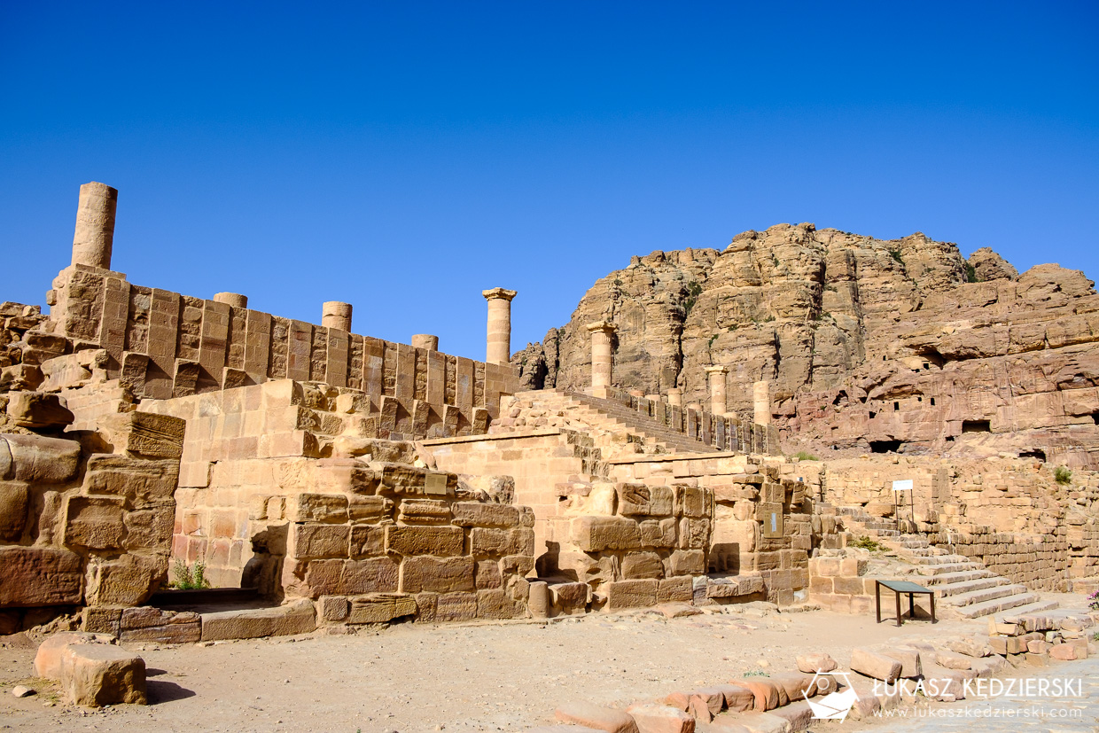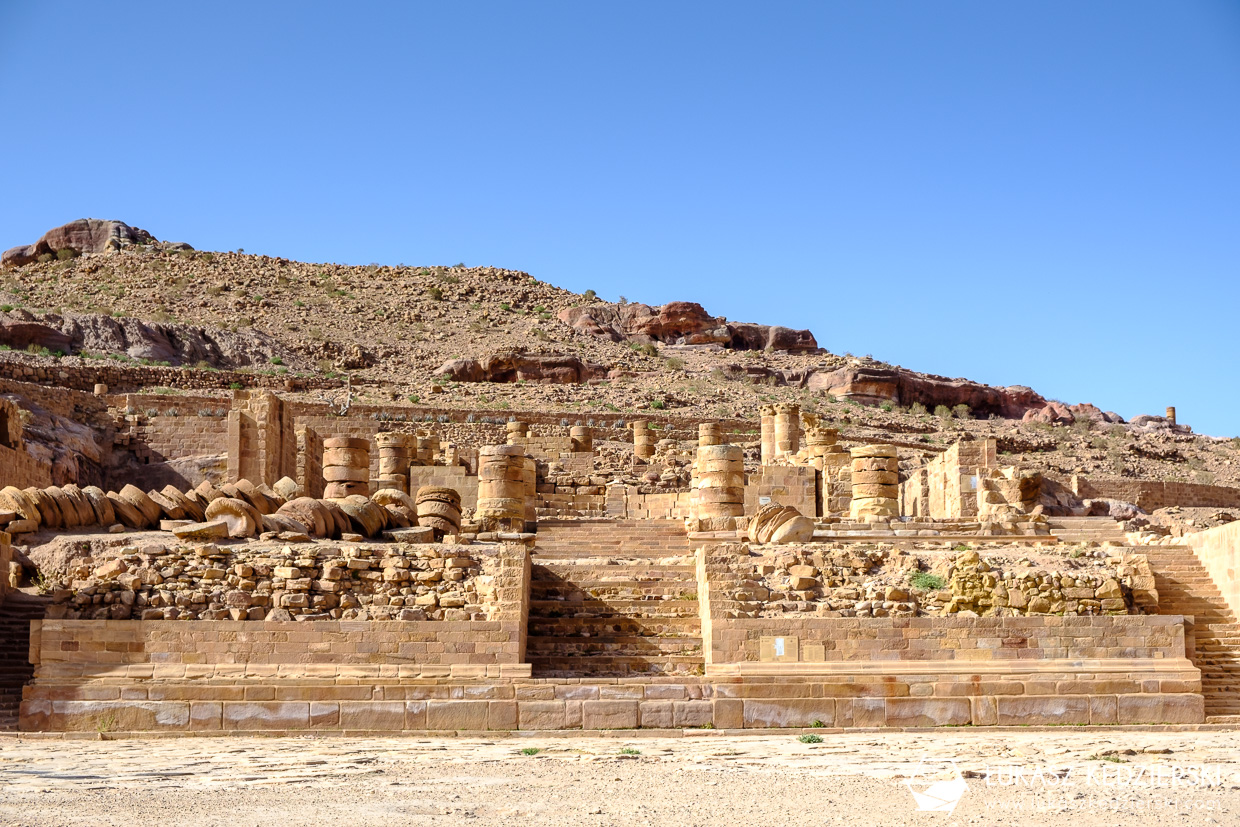 Znajdujemy się u podnóża góry, gdzie na szczycie znajduje się High Place of Sacrifice. W tym miejscu, w czasach panowania króla Aretasa IV, powstał teatr. Ma on trzy rzędy siedzeń, które są w stanie pomieścić ok. 4000 widzów. Niestety obecnie tylko zza ogrodzenia możemy zobaczyć to miejsce.