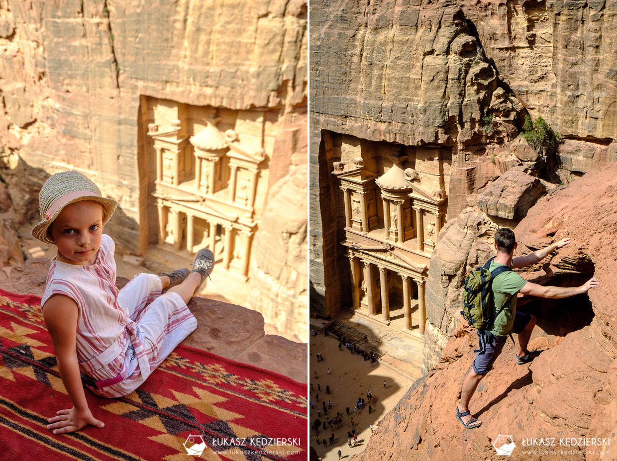 Na samym końcu szlaku Al-Khubtha trail czeka nas nagroda. Z kilku miejsc będziemy mogli podziwiać wspaniały widok na Skarbiec Faraona. Są to ewidentne miejsca, które tylko czekają, aby zrobić z nich mnóstwo zdjęć. Po prawej stronie jest wystająca skała, duży głaz, a na samym końcu namiot, gdzie napijemy się dobrej kawy z pięknym widokiem na Skarbiec Faraona.