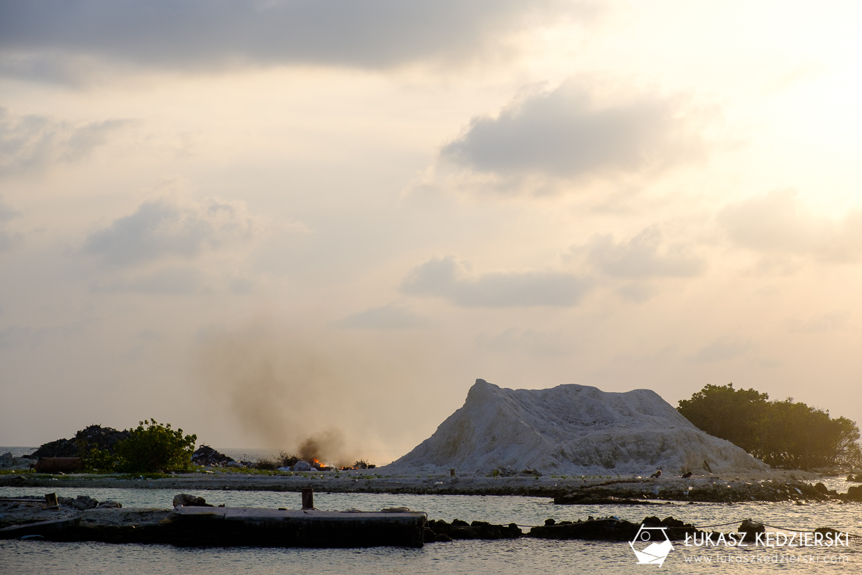 Jak na większości wysp na Malediwach, tutaj również pojawia się problem śmieci. Na najbardziej wysuniętym krańcu wyspy następuje utylizacja śmieci. Nie wiem, czy wszystkie, czy tylko jakieś wybiórcze, ale następuje tu palenie śmieci. Najczęściej wieczorem gęste, czarne kłęby dymu unoszą się w powietrzu. Czasami również w ciągu dnia paliło się ognisko. Przykry to widok na tle bajecznego koloru wody.