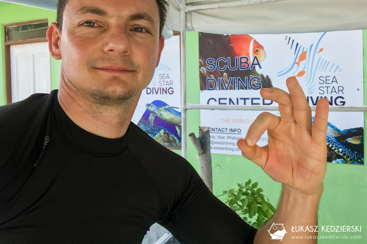 Na wyspie Thulusdhoo są dwie bazy nurkowe. Byłem w pierwszej z nich – Feenaadive, ale po rozmowie z obsługą, nie chciałem z nimi nurkować. Natomiast po przekroczeniu progu drzwi w Sea Star Diving i kilku chwilach rozmowy z właścicielem wiedziałem, że to odpowiednia ekipa. Super podejście do klienta, precyzyjne odpowiedzi na pytania, nowiutki sprzęt. Pomimo że byłem jedynym klientem, to bez problemu umówiliśmy się na nurkowanie następnego dzień.