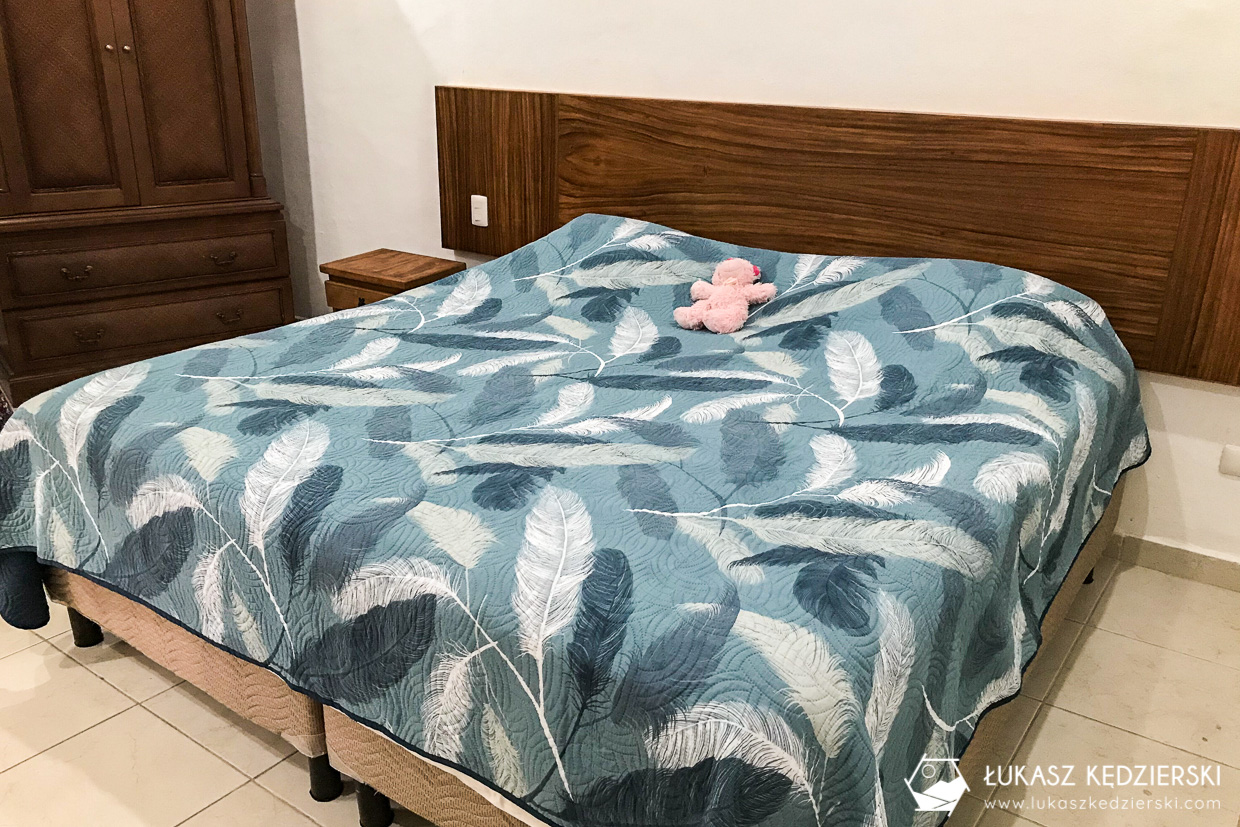 Jak wiecie, to do Meksyku polecieliśmy całą naszą rodzinką: 10-letnia Nadia, Aga oraz ja. Każdy nocleg, z którego korzystaliśmy, był dla dwójki dorosłych i jednego dziecka. Podczas rezerwacji warto na to zwrócić uwagę, ponieważ praktycznie każdy hotel czy guesthouse może mieć zupełnie inną politykę dotyczącą dzieci. Czasami są liczone jako dodatkowa osoba, czasami dziecko do x lat, gdy śpi na obecnych łóżkach, jest gratis, a czasami jest jakaś stała kwota doliczana za dziecko.