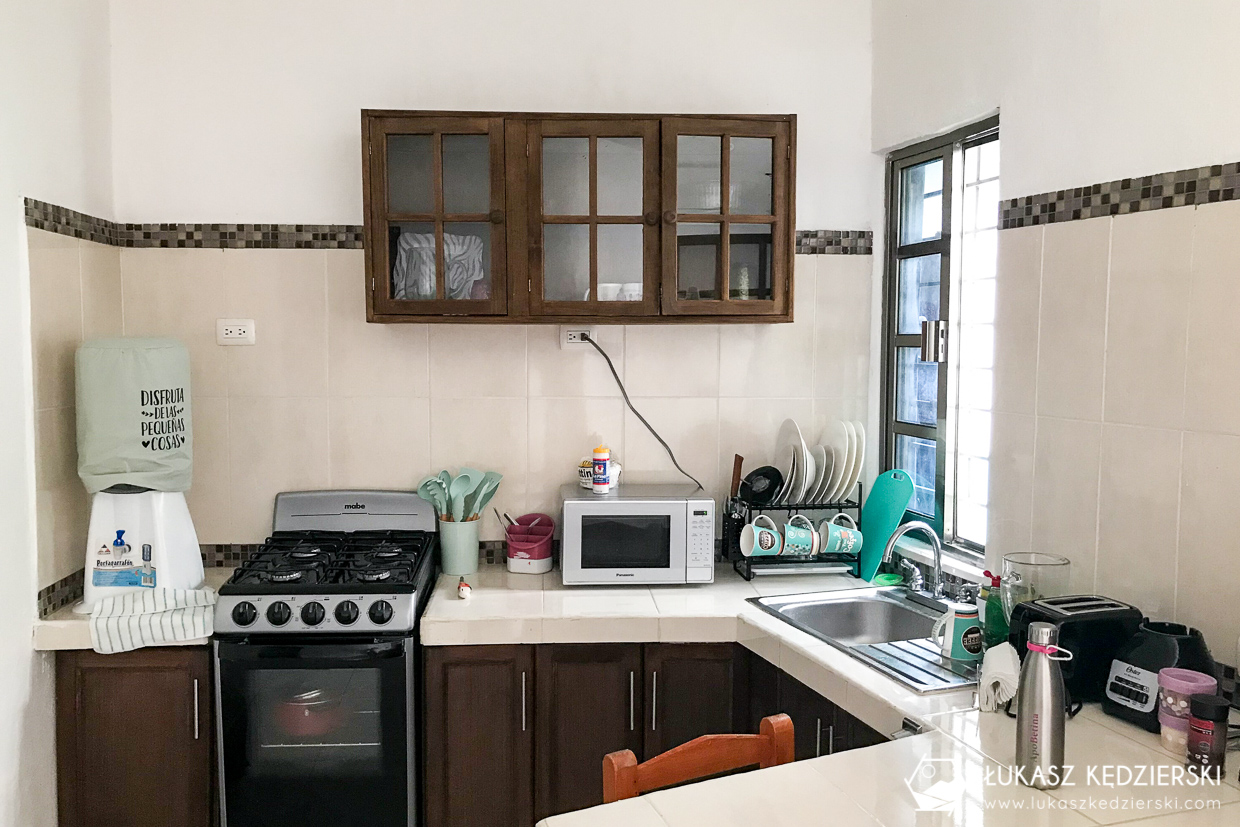 Apartament położony trochę na uboczu, jakieś 10 min spacerkiem do centrum wyspy Cozumel. Do naszej dyspozycji jest duża sypialnia z wielkim łóżkiem i kilkoma szafami, bardzo fajna łazienka i salon. Do tego w pełni wyposażony aneks kuchenny z mikrofalówką, tosterem, ekspresem do kawy, lodówką, a także z baniakiem pitnej wodny. Szybkie WiFi dostępne w apartamencie. Wszędzie lśni i pachnie czystością. Przed wejściem do apartamentu jest stół, krzesła i parasol w otoczeniu zieleni, gdzie można odpocząć od gorąca i przyjemnie zjeść śniadanie. Właściciele bardzo mili i pomocni. Zdecydowanie polecamy to miejsce.