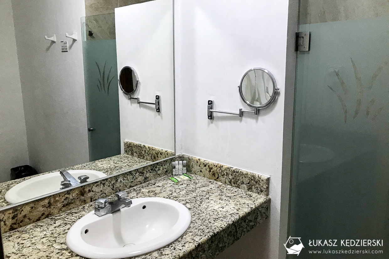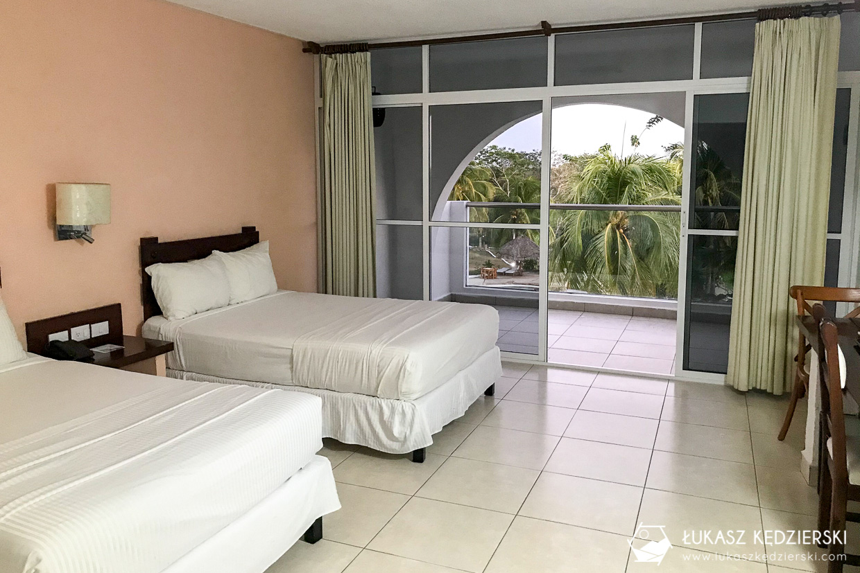Los Arcos Hotel położony jest ok. 200 metrów od głównej ulicy w Tulum. Średniej wielkości pokój z dwoma podwójnymi łóżkami i łazienką. Cisza i spokój i wszędzie czysto. W hotelu dostępna jest wspólna kuchnia, gdzie możemy coś przygotować i zjeść lub przechować coś w lodówce. Znajduje się tu również niewielki basen i leżaki w cieniu, gdzie można odpocząć od upalnej pogody. WiFi jest dostępne w hotelu i ale najlepiej działa w częściach wspólnych. Obsługa jest bardzo miła i pomocna. Na zewnątrz hotelu znajduje się niewielki prywatny parking na kilka samochodów. Zdecydowanie możemy polecić to miejsce.