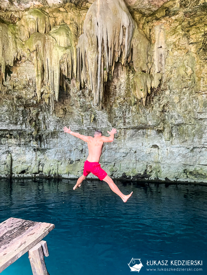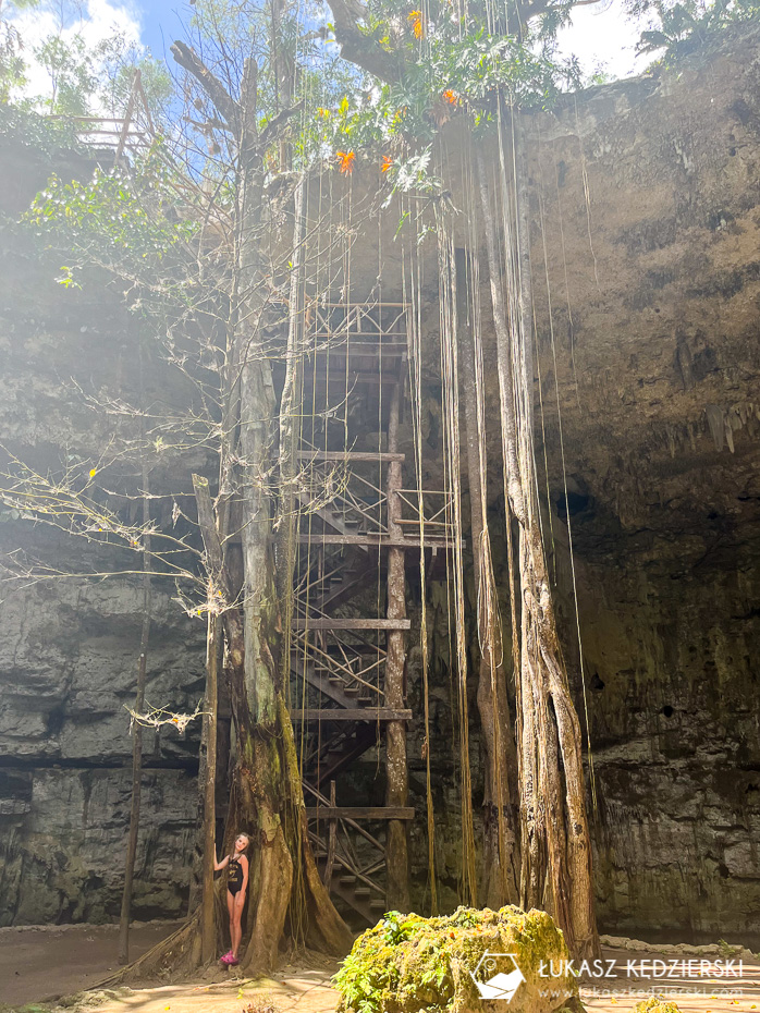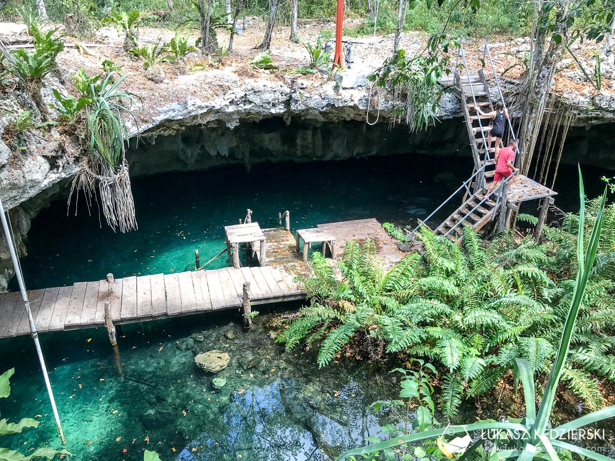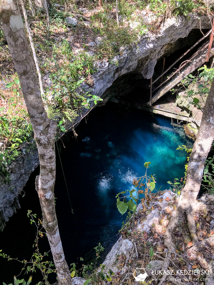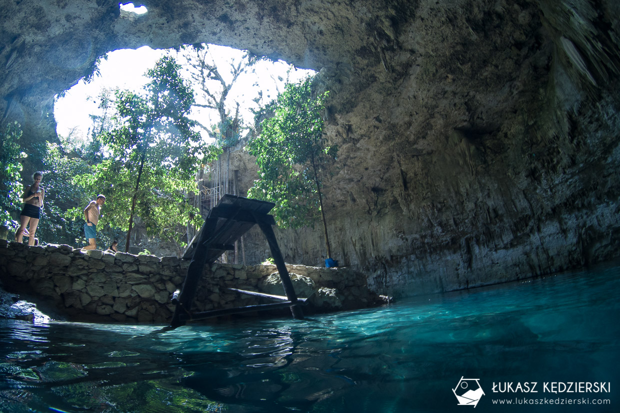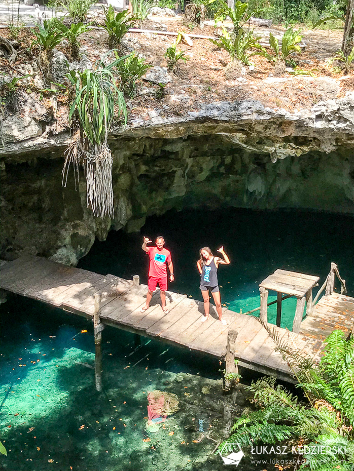 To jedna z najbardziej rozpoznawalnych cenot w internecie. Charakterystyczne miejsce przyciąga ludzi, którzy robią zdjęcia, a później wrzucają do sieci. Kamienny „pomost” z kołem, na którym wszyscy stają i robią sobie pamiątkowe zdjęcie. Nie ma co się dziwić. Wygląda bardzo pięknie, a jak się przyjedzie wcześnie rano, to ma się ją na wyłączność przynajmniej przez parę minut. Nam się to udało. A sama cenota? Oj robi wrażenie! Szkoda, że jest tak bardzo popularna, bo chciałoby się tu dłużej samemu siedzieć. Byliście? Jak Wam się podobało?