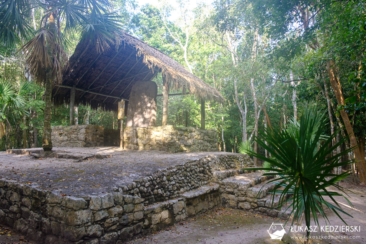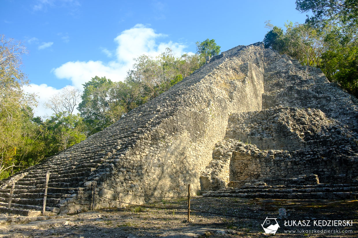 My wybraliśmy spacer. Powoli odwiedzamy wszystkie punkty na trasie. Na koniec doszliśmy do jednego z najważniejszych punktów na mapie, czyli Nohoch Mul (Wielki Kopiec, Wielka Piramida). Niestety bardzo ubolewamy nad tym, ale obecnie nie można się na nią wspiąć. Wejście jest dosyć strome i podobno zachodziły tu iście „dantejskie sceny”, jak turyści po nierównych schodach wyczyniali cuda, aby zejść na poziom ziemi. Pozostałe ruiny są dużo mniejsze, ale i tak ciekawe. Spacer bardzo przyjemny zwłaszcza tak wcześnie rano, gdy słońce jeszcze nie jest zbyt mocne. Do tego całość zwiedziliśmy w ciszy i spokoju i dopiero pod koniec, pod najważniejszym miejscem spotkaliśmy małe grupki turystów. Warto było wcześnie wstać.