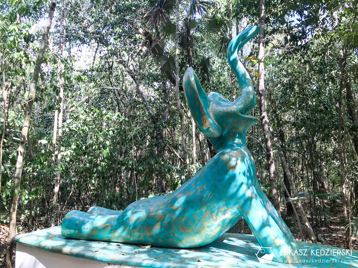 Po południu pojechaliśmy na coś „artystycznego”, czyli Holistika Art Walk. W hotelu Holistika stworzyli park, gdzie pośród zieleni znajdują się artystyczne instalacje i udostępnili go odwiedzającym za zupełną darmochę. Niesamowite miejsce pokazujące synergie artystycznych wizji wkomponowanych w piękny naturalny las. Chodziliśmy wytyczoną ścieżką od obiektu do obiektu. Są tu obrazy, rzeźby, małe duże, kolorowe i czarno białe. A wszystko to w ciszy i spokoju. Zdecydowanie polecamy ten spacer.