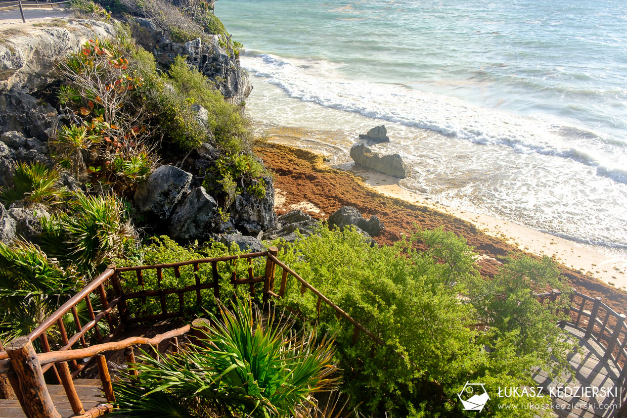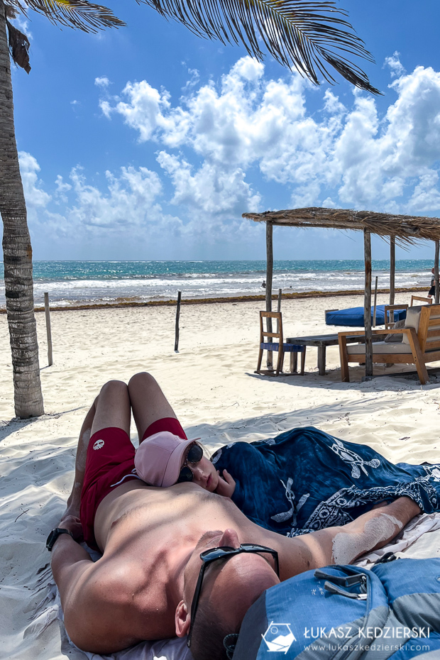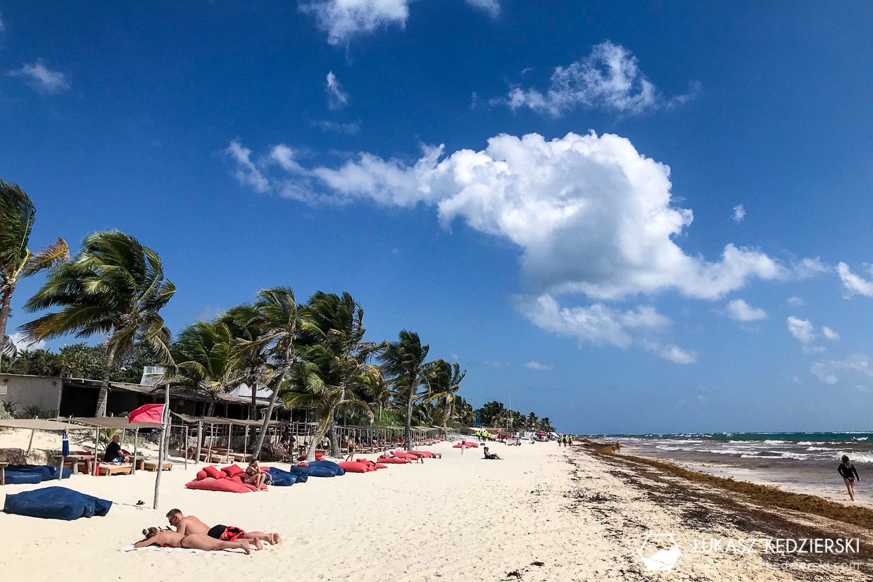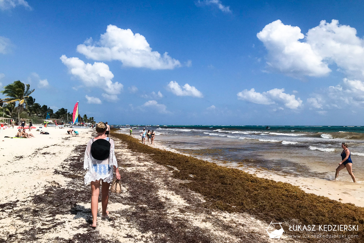 Wprost spod ruin pojechaliśmy na plażę. Miała to być nie byle jaka plaża, bo Playa Paraiso. Mówi się, że to jedna z piękniejszych plaż Meksyku, a może i na święcie. Nie wiem, kto układa te rankingi, ale chyba nie widział innych plaż. Fakt piasek jest bardzo delikatny i idealnie biały. Fakt trafiliśmy akurat wodorosty na plaży i w wodzie więc turkusowy kolor był tylko widoczny kawałek od brzegu. Może gdyby nie było wodorostów, to wygląd tej plaży byłby iście rajski, ale nadal to tylko plaża.