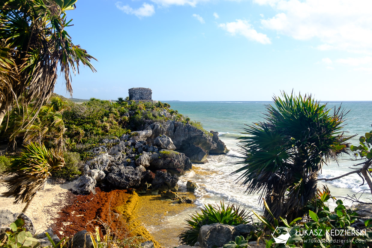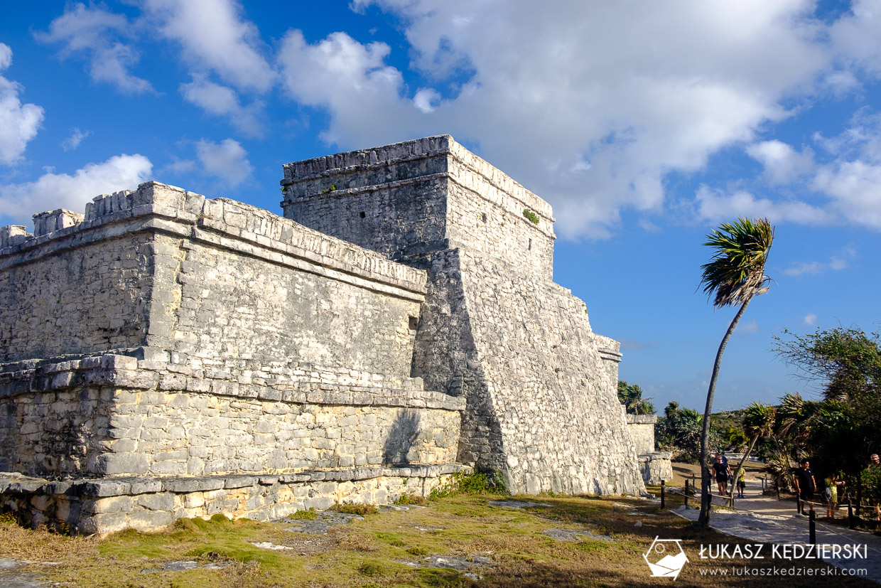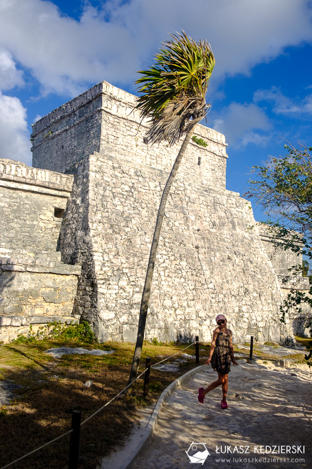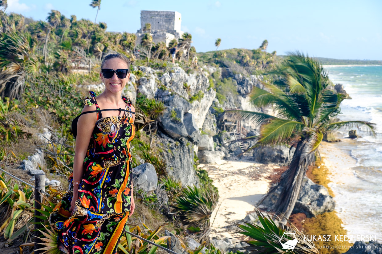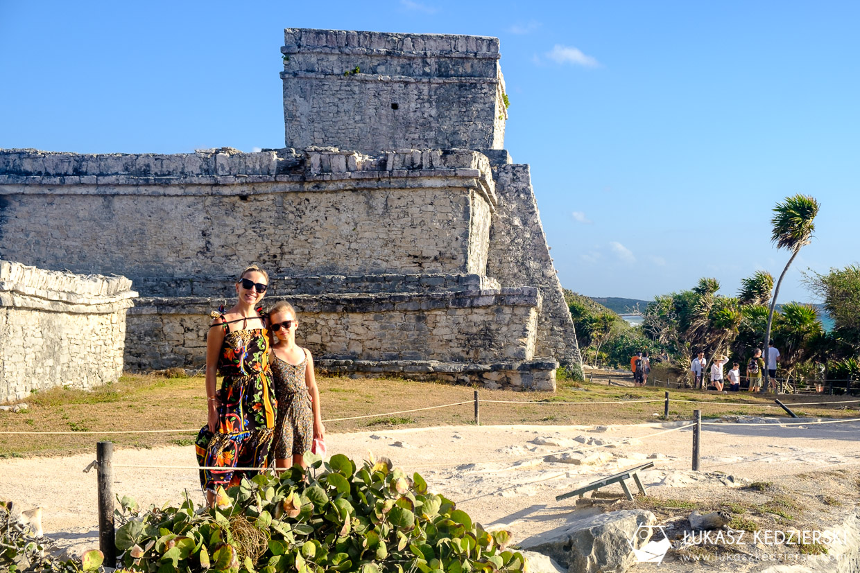 Ruiny Majów w Tulum są pięknie położone nad samym morzem, gdzie pięknie kontrastują z niebieskim kolorem wody. Fajny teren do swobodnego spacerowania. Koniecznie trzeba zobaczyć El Castillo, czyli zamek, Templo del Dios Descendente (Świątynia Zstępującego Boga) czy Templo del Dios del Viento (Świątynia Boga Wiatru). Wszędzie są małe tabliczki opisujące, co się dokładnie ogląda. No i przede wszystkim ten komfort braku tłumów. Bezcenne. Zdecydowanie nam się podobało bardziej niż na wyspie Cozumel.