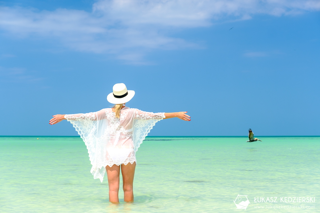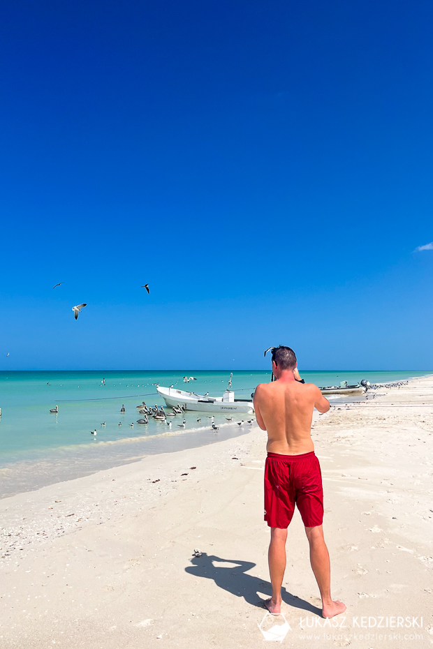 Co się robi na wyspie? Nie wiem, ale my się skupiliśmy na nicnierobieniu. Chociaż nie zawsze to takie proste, bo dzisiaj na nicnierobienie wybraliśmy sobie podobno najładniejszą plażę na Holboxie. Poszliśmy do Punta mosquito. Aby się tam dostać, poszliśmy na godzinny spacer plażą, mieliznami i płytką wodą. Oj zdecydowanie warto było tu przyjść. Niesamowity kolor wody i piasku, długie mielizny. Jeżeli będziecie na Holboxie to koniecznie wybierzcie się w to miejsce. Musi być dużo słońca i kolorki same się robią!!!! Bajka, po prostu bajka. A i zimny kokos na plaży to podstawa. Przyjemne orzeźwienie.