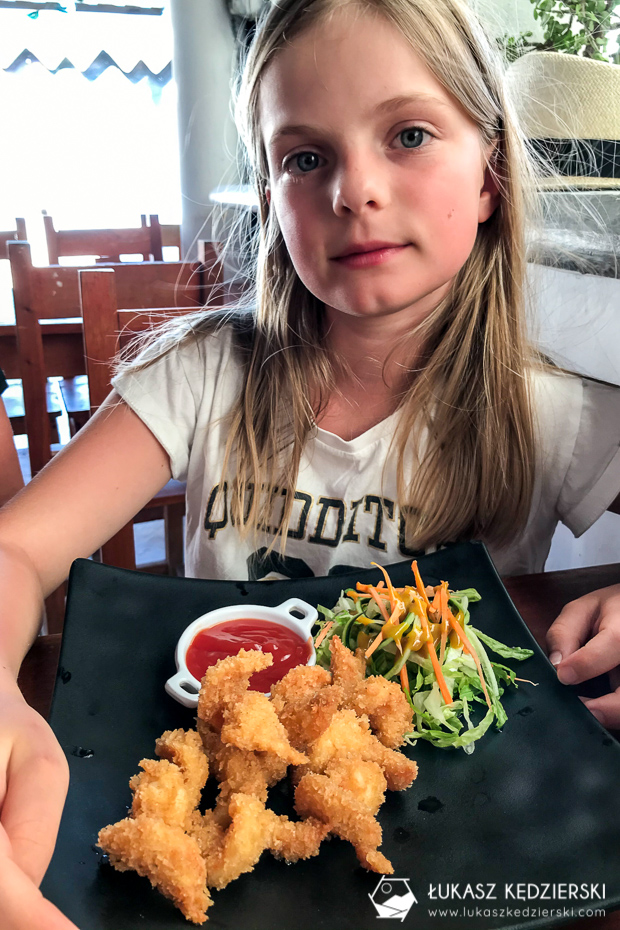 Ja wiem, wiem znów o jedzeniu, ale inaczej się nie da. Zwłaszcza że na wyspie trzeba jeść to, co daje morze. Dzisiaj krewetki w 3 odmianach: ceviche, grillowane z czosnkiem i w panierce na głębokim tłuszczu. Jakie do było dobre!!! Wszystko pyszne, że mniam mniam. Do tego margarita, mojito i sok ananasowy dla Nadii. Chyba tu jeszcze wrócimy, bo było bardzo dobre.