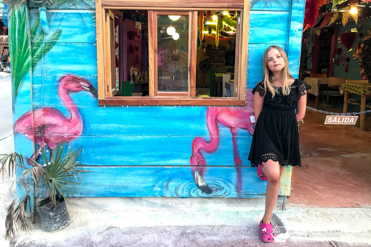 Holbox jest bardzo kolorowy. Spacerując ulicami, które są zrobione z piasku, często mija się kolorowe ściany, budynki i murale. Jedyne co tu przeszkadza, to te nieszczęsne pojazdy, które trochę zakłócają tę atmosferę. Jednak nawet te pierdzące dźwięki wydechów, po pewnym czasie nasze ucho pomija i zapomina o nich. Fajne te kolory i różne grafiki na ścianach prawda? Od razu jakoś tak radośniej i weselej.