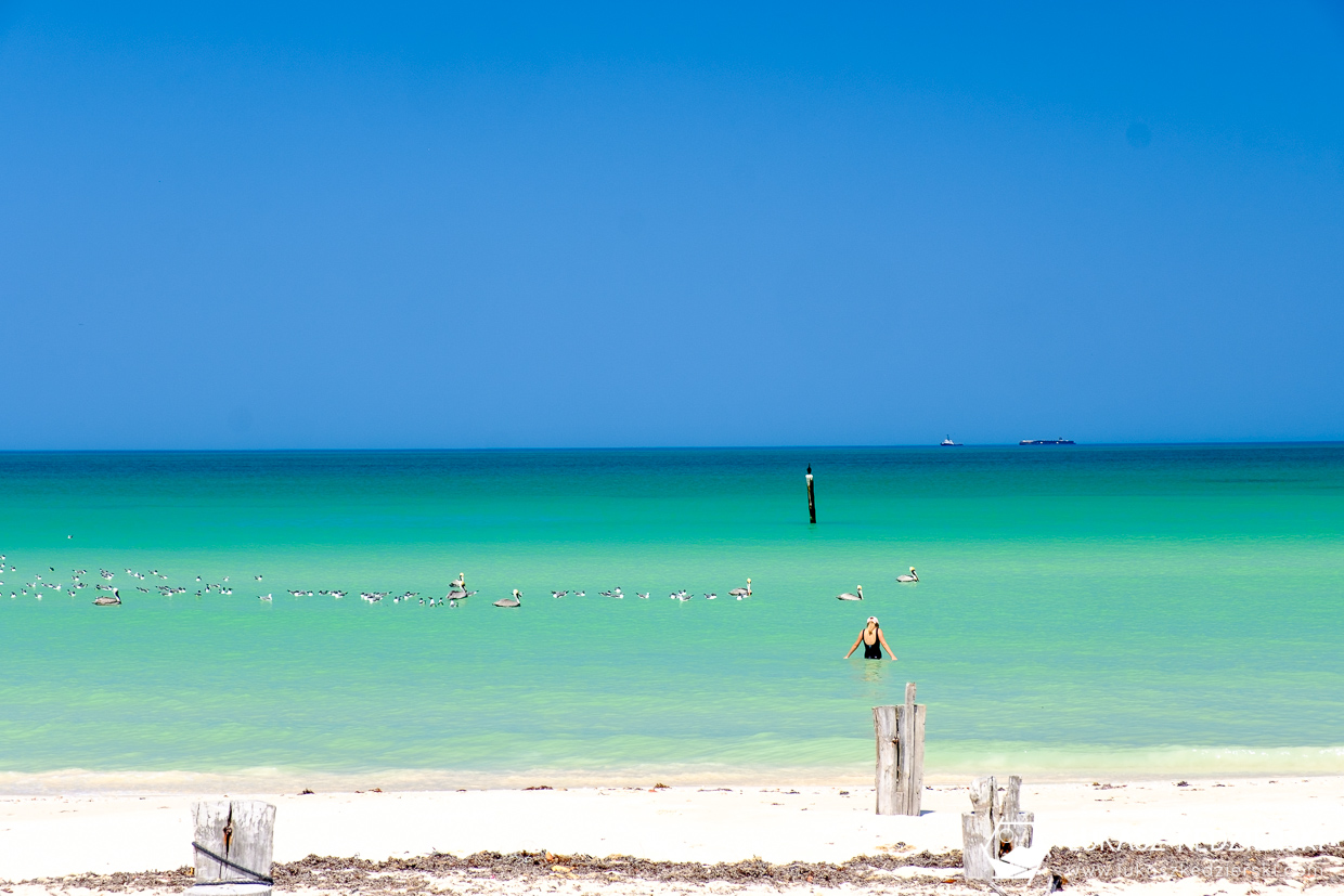 Od wczoraj jesteśmy na wyspie Holbox. Pierwsze wieczorne wrażenie było takie sobie. Mnóstwo głośnych pojazdów ATV i sporo ludzi. Jednak poranek i spacer plażą wszystko wynagrodził. Zobaczcie sami. Biały, drobny piasek, długa płytka woda o niesamowitym kolorze. No po prostu bajka.