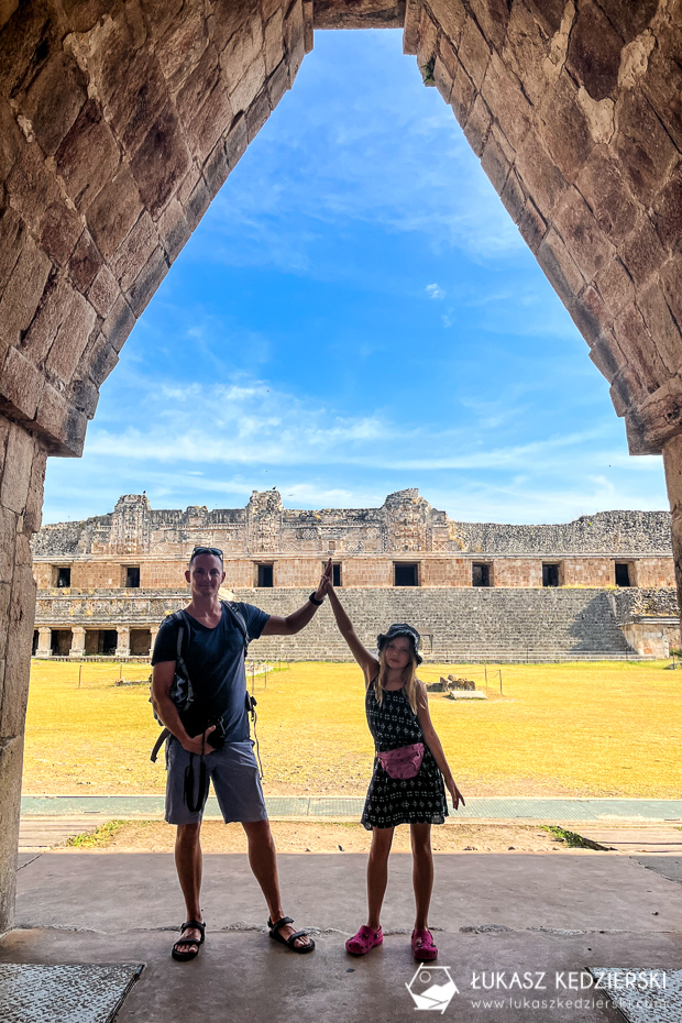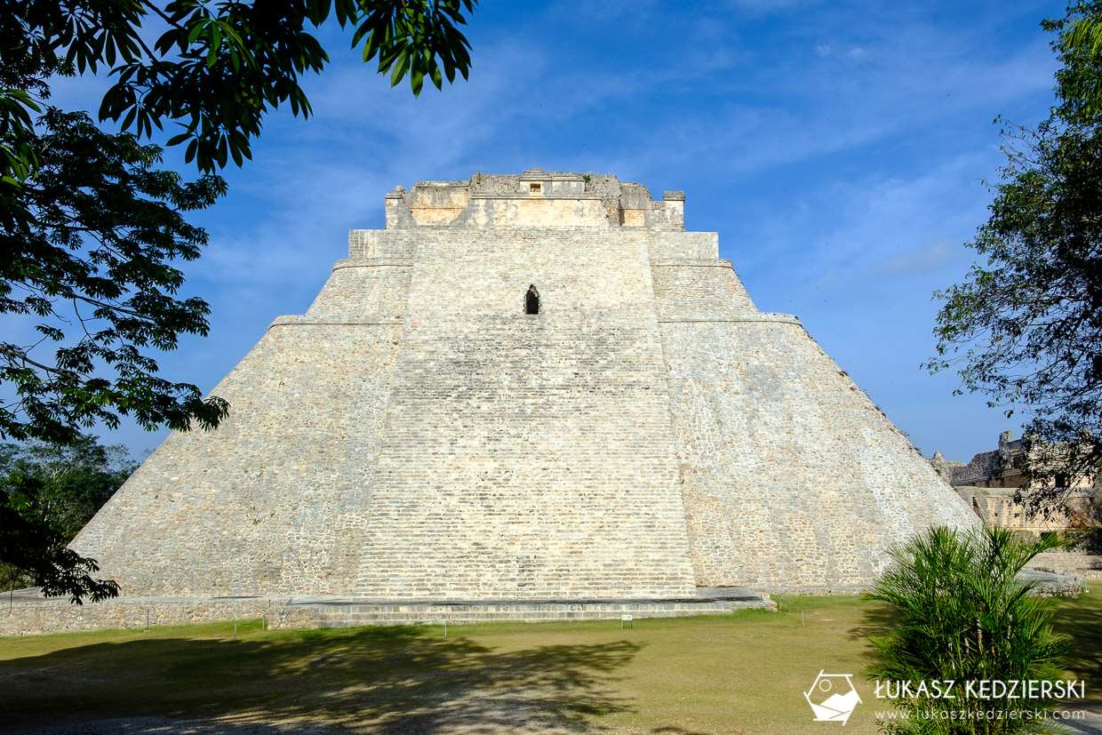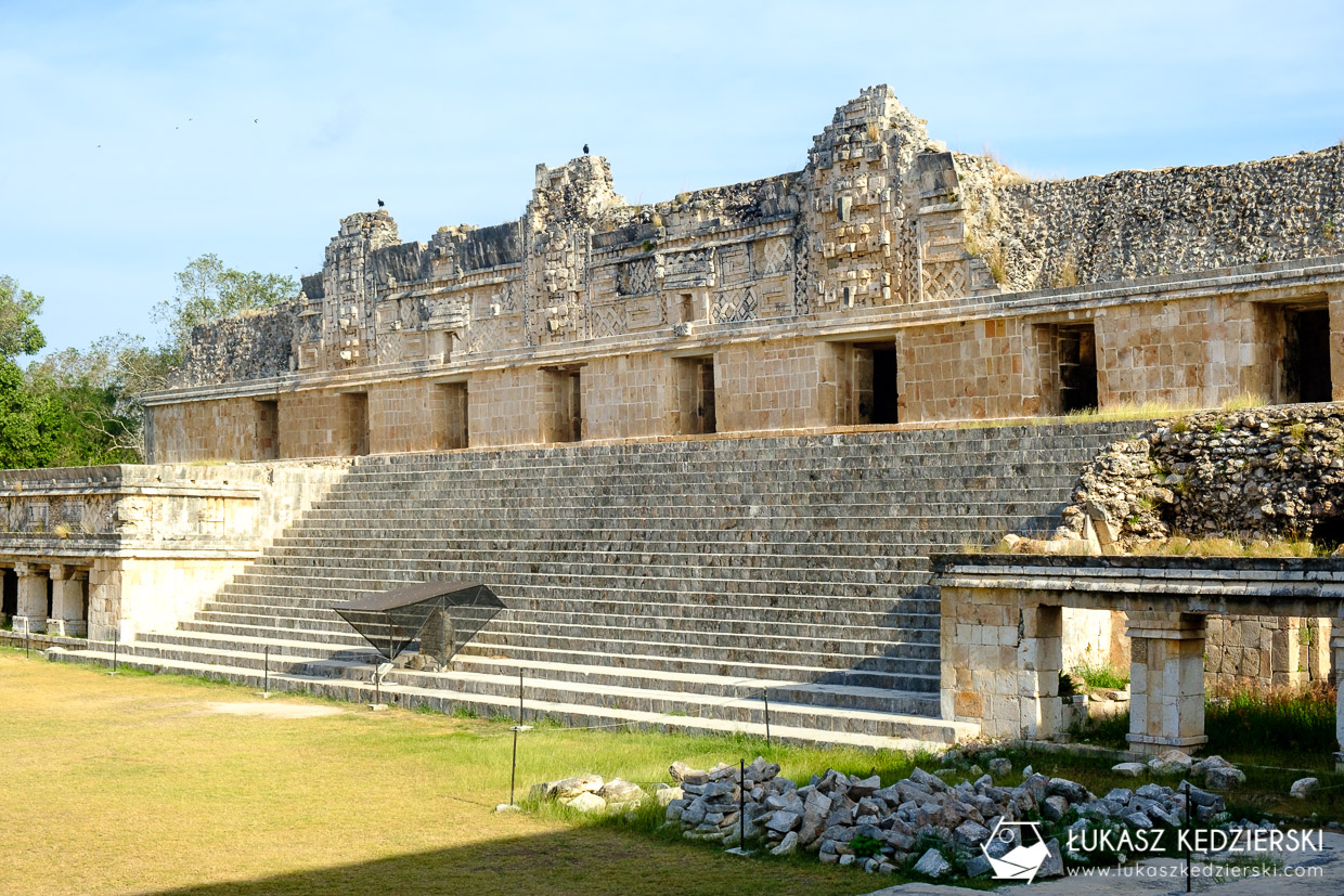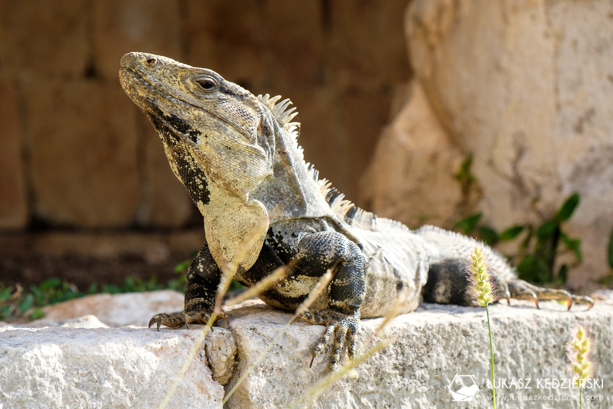To nasze ostatnie odwiedziny ruin. Tym razem zawitaliśmy do Uxmal. Przepiękne i puste miejsce. Rano spotkaliśmy zaledwie kilku turystów. Niesamowita przyjemność móc mieć dla siebie cały ten teren. Olbrzymia Piramida Wróżbity, pałac Gubernatora, Dom Żółwi i Mniszek i wiele innych. Budynki są bardzo mocno zdobione, co jest charakterystyczne dla stylu Puuc. Całość robi wrażenie, a jak widać, prace nadal tu trwają i za jakiś czas będzie jeszcze piękniej. Mnóstwo tu zdobień, płaskorzeźb i innych cudowności. Brak tu straganów i wołania „1 $”, a za to słychać tylko skrzeczące ptaki. Do tego niezliczone ilości iguan, które wygrzewają się praktycznie na każdym kroku. Przepiękne miejsce. Bardzo przypadło nam do gustu.