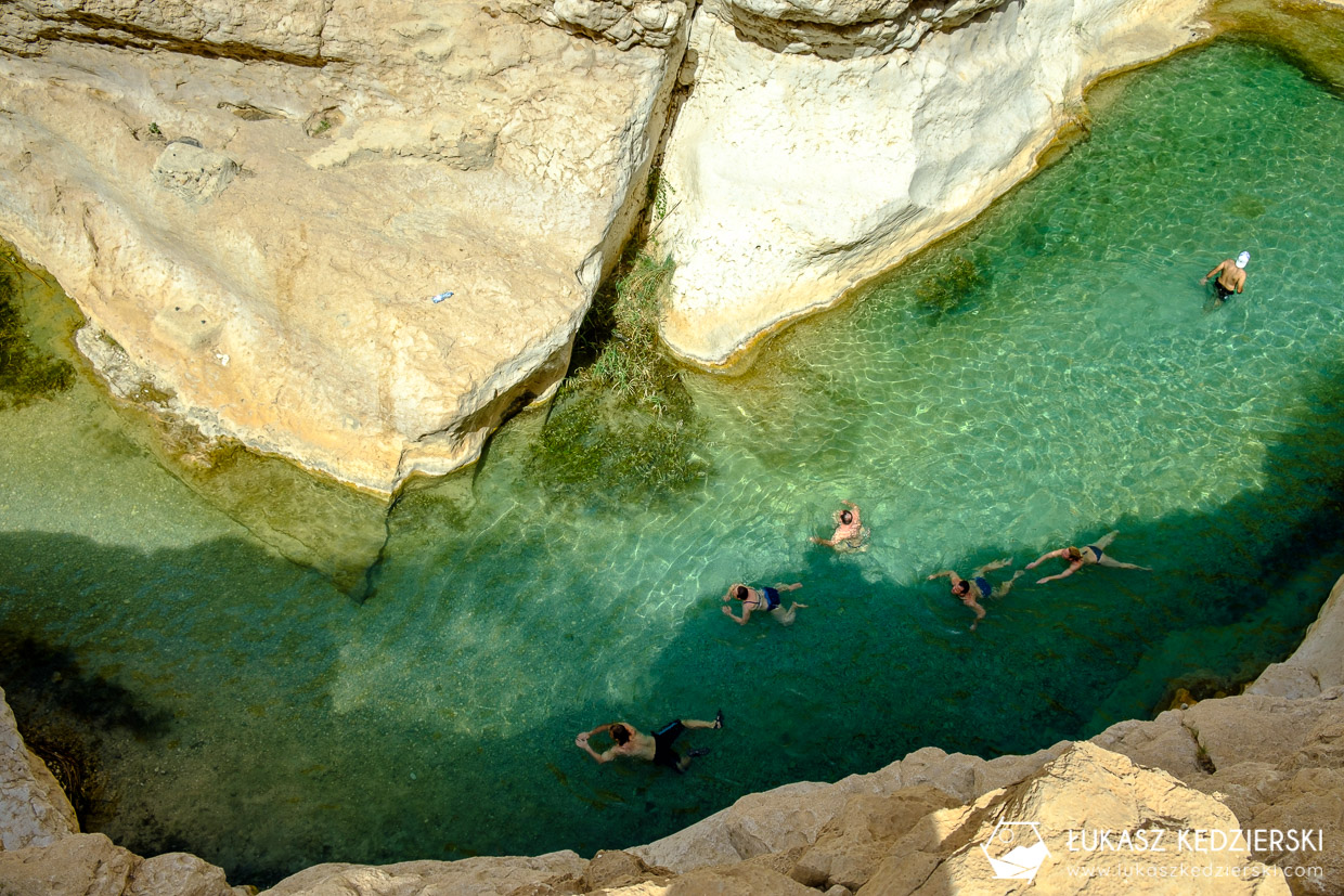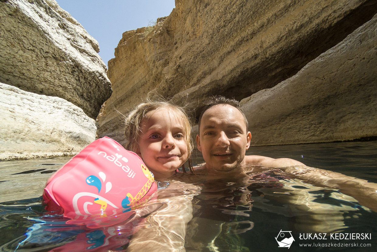 Przyjechaliśmy zobaczyć kolejne wadi. Początek to raczej lekkie rozczarowanie. Wielki basen z knajpkami i mnóstwem (oczywiście jak na omańskie warunki) ludzi dookoła. Jednak im dalej człowiek pójdzie, tym przyjemniej i ciekawiej. Piękna, biała skala, krystalicznie czysta woda i wiele opcji do skakania i zabawy. Są tu płytkie i głębokie baseny, są mini wodospadziki, potoki itd.… dużo cienia i słońca – od koloru do wyboru. Super miejsce, aby schować się przed słońcem i orzeźwić się w wodzie.