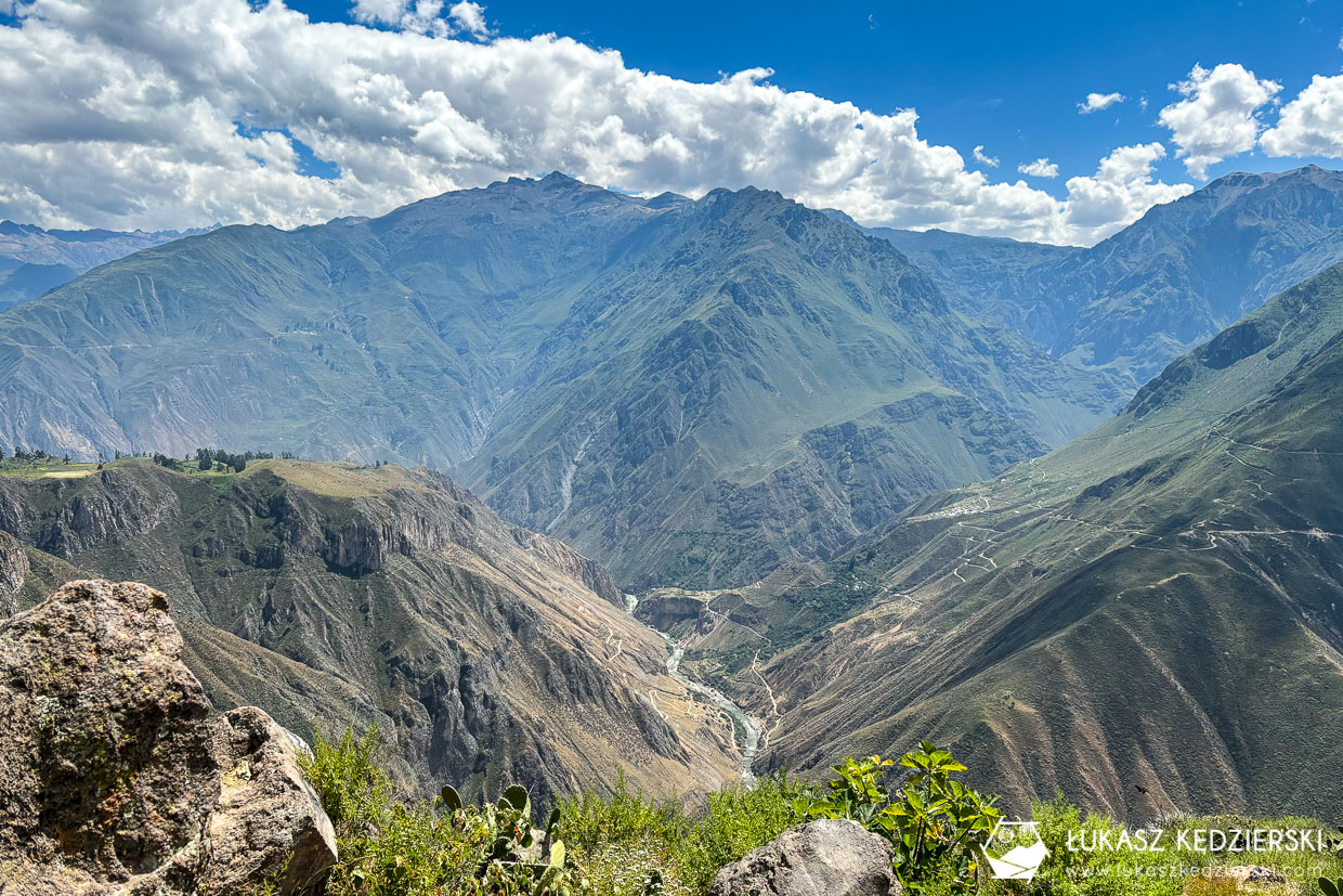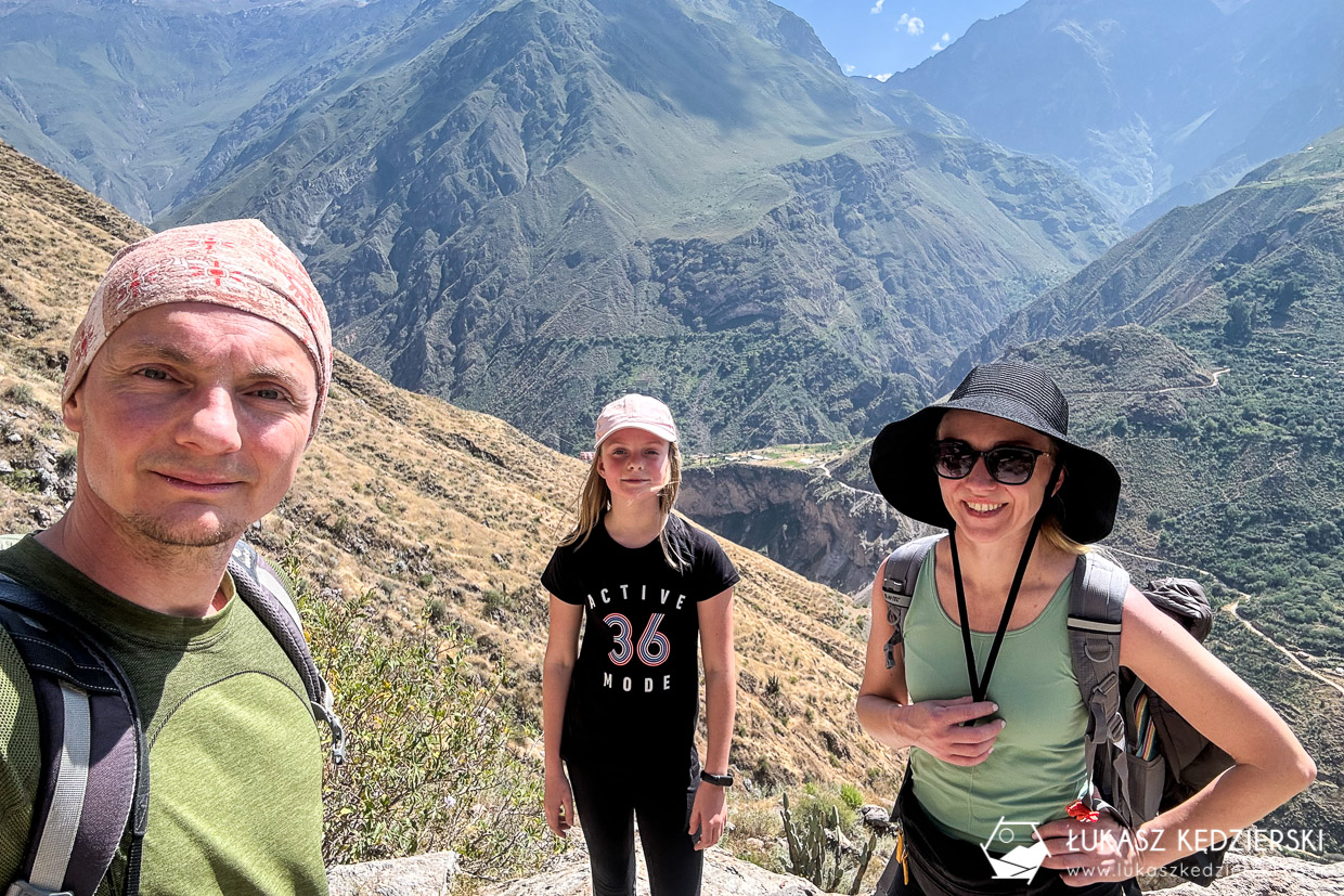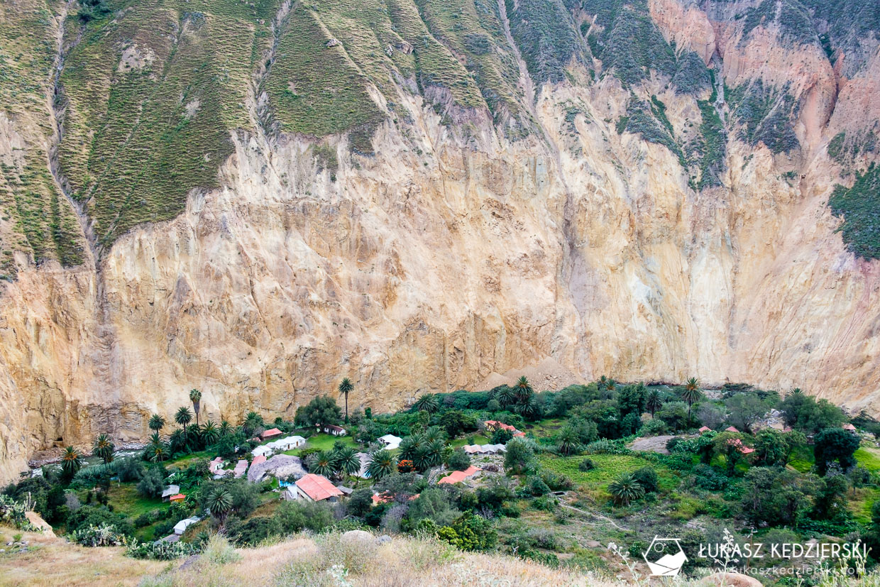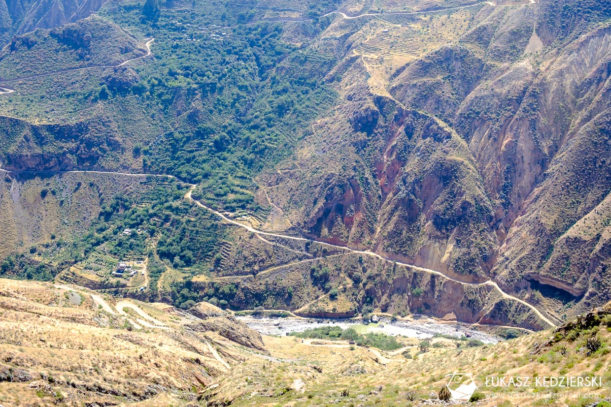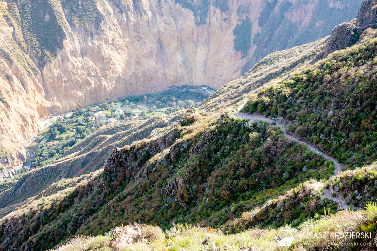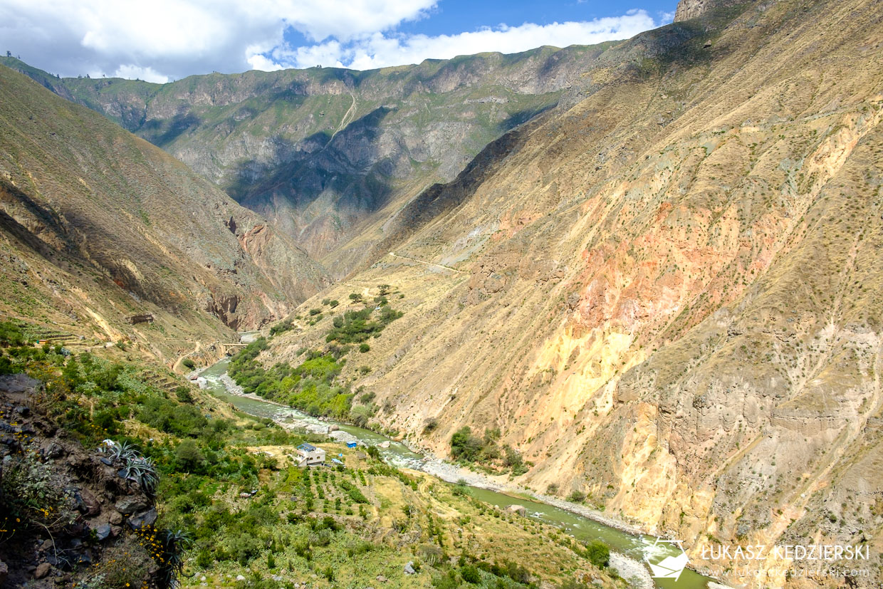 Widoki dookoła powalają na kolana. Wszystko wygląda tu niesamowicie. Im dalej idziemy, tym słońce coraz mocniej smaży, ale i tak idzie się w miarę przyjemnie. Dzisiejszy cel to wioska Llahuar, gdzie spędzimy pierwszą noc na dnie najgłębszego kanionu na świecie. Cała trasa zajęła nam niecałe 5 godzin. Pokonaliśmy ponad 1200 metrów w pionie i znajdujemy się na dnie kanionu Colca na wysokości 2150 m n.p.m.