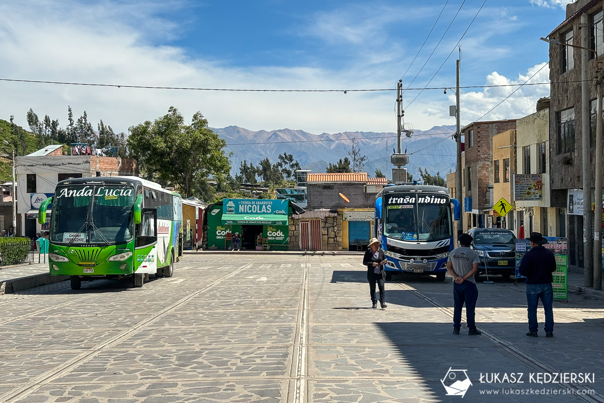 Druga część dzisiejszego dnia jest mocno transportowa. Musimy wrócić z Cabanaconde do Arequipy. Trasę pokonujemy lokalnym autobusem firmy Andalucia. Zatrzymuje się on dosłownie w każdym miejscu. Wystarczy zapukać monetą w drzwi i kierowca się zatrzymuje.
