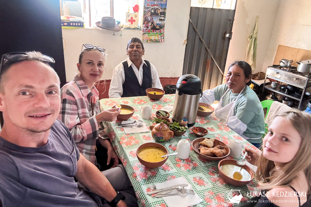 Domki są dosyć małe i niskie, a rodzina Maruha bardzo dobrze się nami zajęła. Bariera językowa jest olbrzymia. Oni rozmawiają w keczua i hiszpańsku a my na migi, ale nie przeszkadzało nam to i sporo „rozmawialiśmy” przy wspólnych posiłkach.