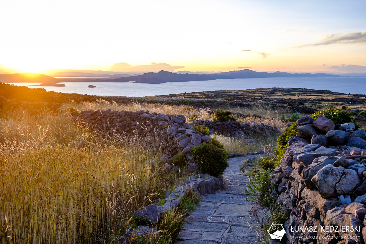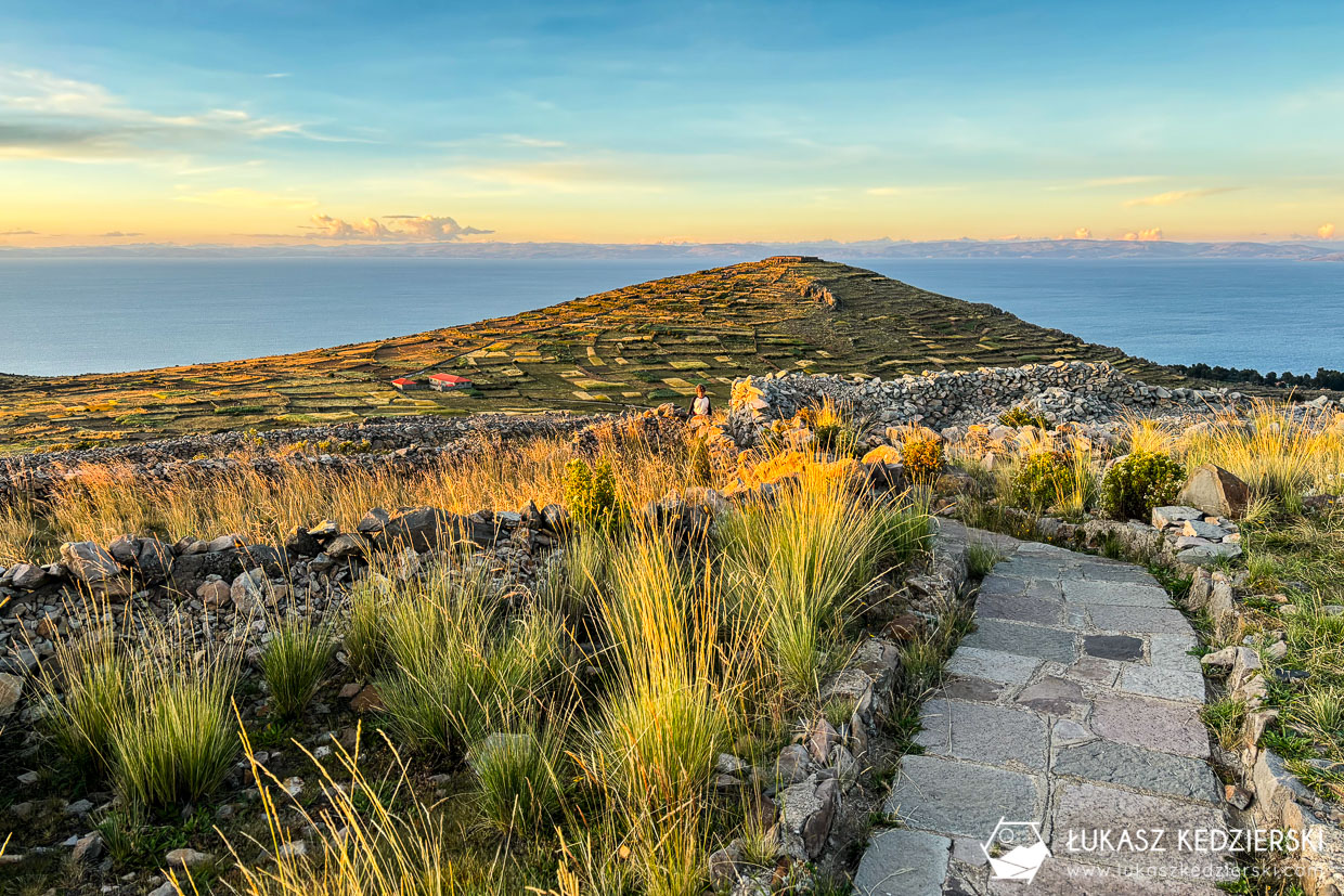 Wieczorem na wyspie Amantani udaliśmy się na spacer na wzgórza do świętych miejsc, czyli Pachamama i Pachatata, aby zobaczyć pozostałości po tutejszych świątyniach i piękny zachód słońca.