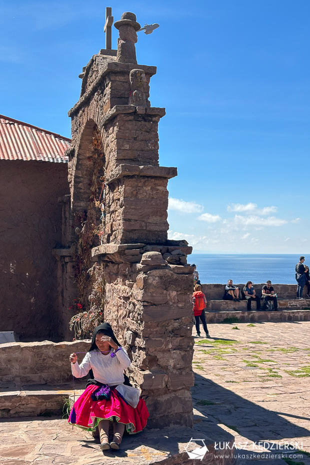 Rano zaraz po śniadaniu wsiedliśmy na łódkę, aby kierować się w stronę wyspy Taquile. Jest trochę inna, jakby bardziej rozbudowana z różnymi chodnikami i zabudową. Oczywiście nadal trzeba mocno chodzić góra, dół.