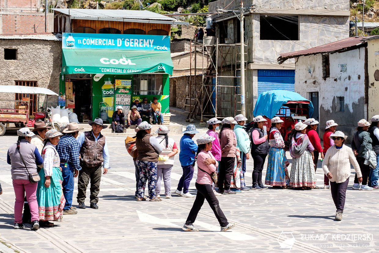 W międzyczasie na placu dzieje się jakiś więc wyborczy? Nie jesteśmy pewni, bo wszystko po hiszpańsku, ale zebrało się sporo mieszkańców, aby wysłuchać różnych prelegentów. Zwróćcie uwagę na nakrycia głów kobiet. To ich tradycyjny strój z tego miasteczka, w którym chodzą, na co dzień.