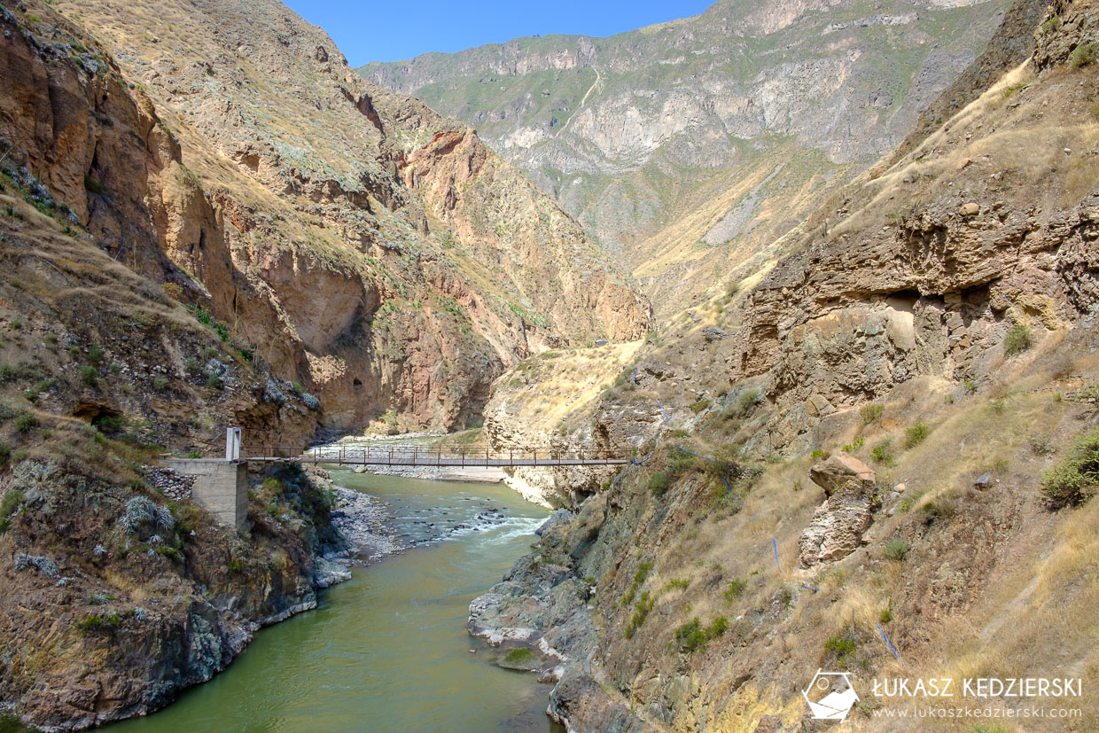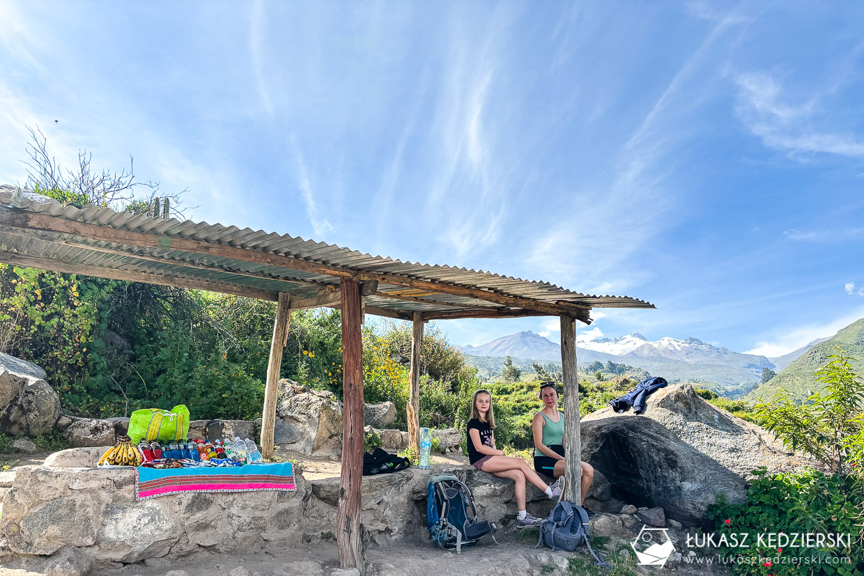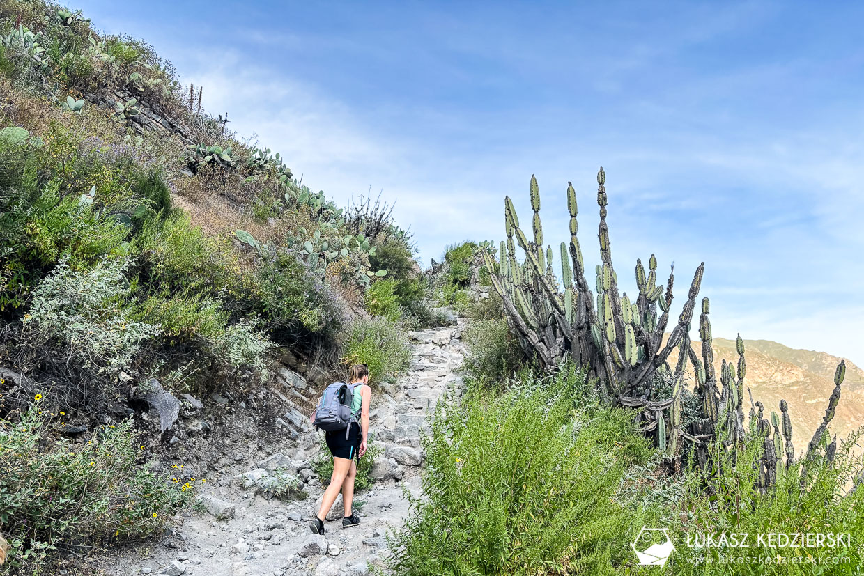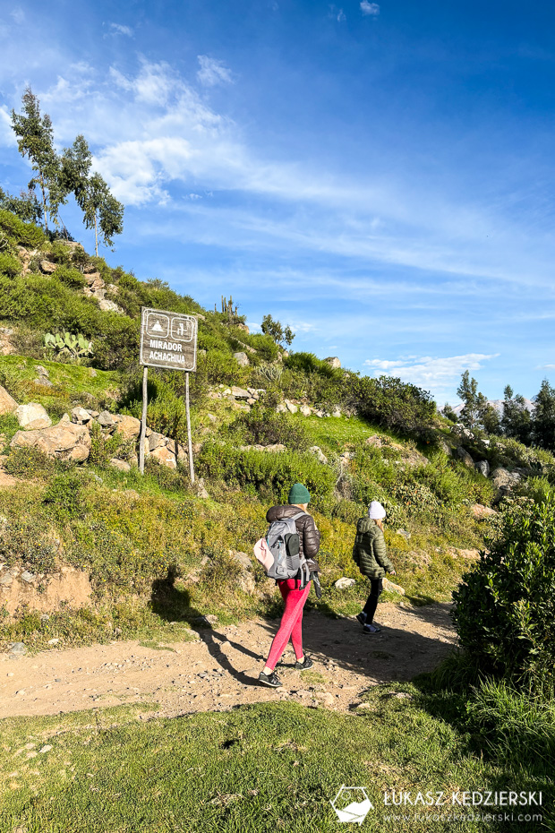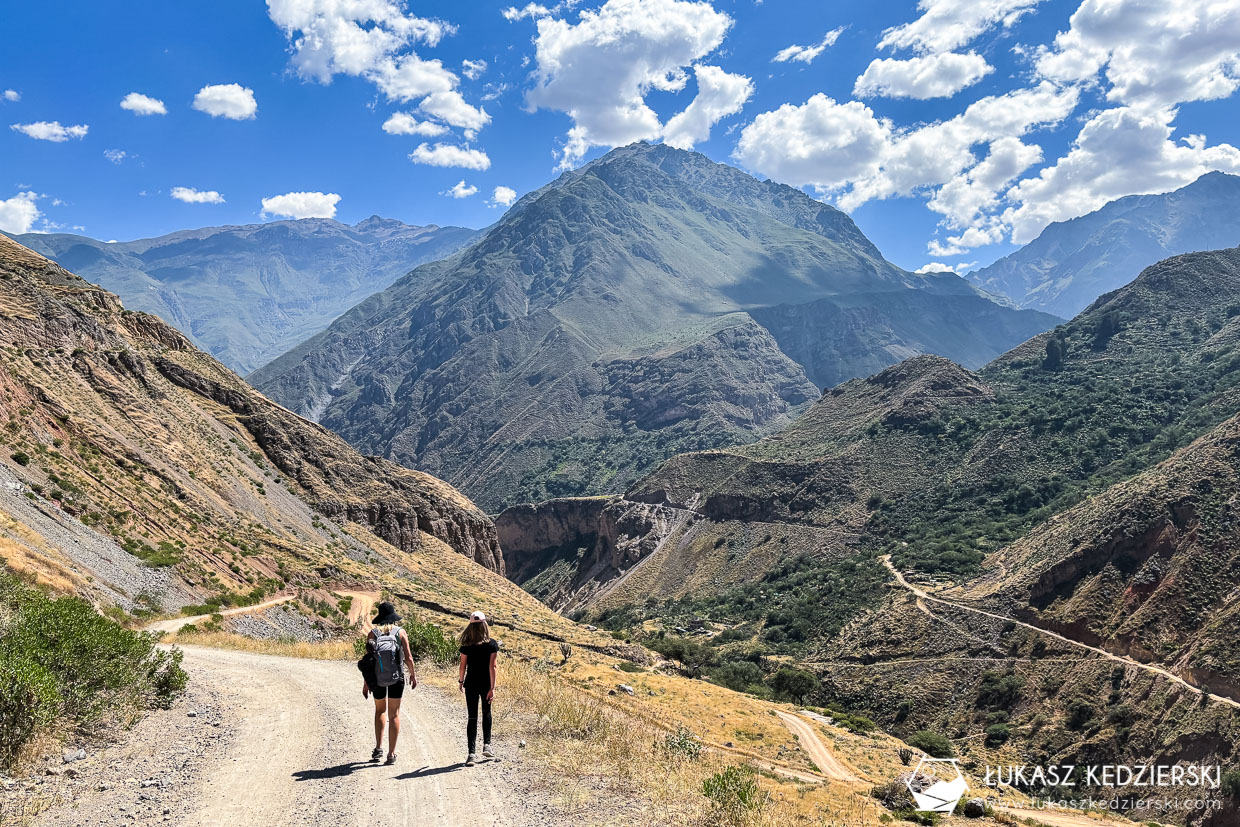 Od kilkunastu lat tak się składa, że moje urodziny spędzamy w podróży. W tym roku nie wyszło, ale dzisiaj są moje imieniny i zejście do kanionu Colca to doskonały pomysł na prezent prawda? Po dosyć dużym śniadaniu w hostelu, wystartowaliśmy koło 7:00 z Cabanadonde kierując się w stronę punktu widokowego Mirador Achachihua. Sprawdzenie biletów przez Panią z parku i ruszamy w dół. Rano było jeszcze mało słońca, więc szło się bardzo przyjemnie. Ścieżka jest ewidentna i nie sposób się tu zgubić. Dochodzimy do pierwszego mostku nad rzeką i robimy odpoczynek.