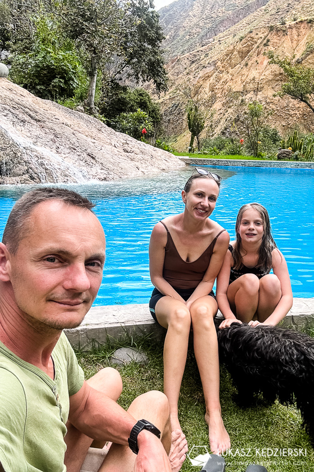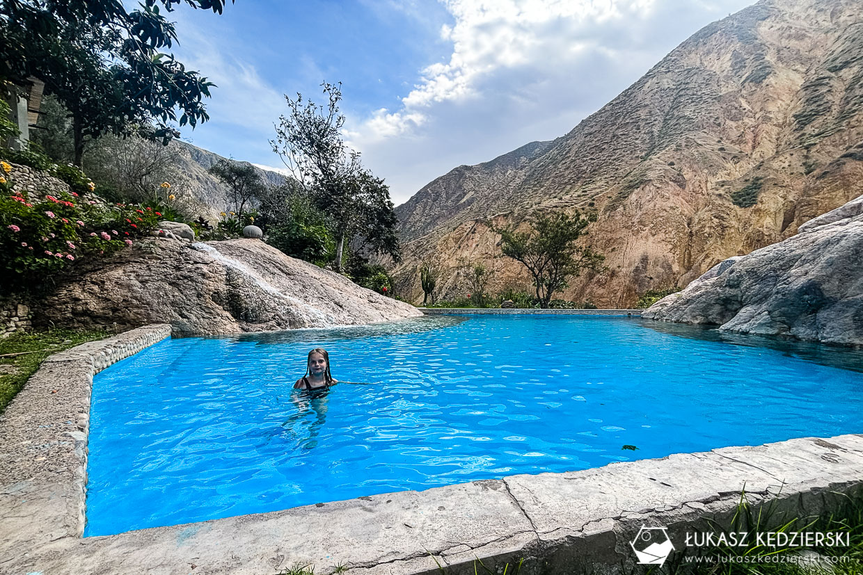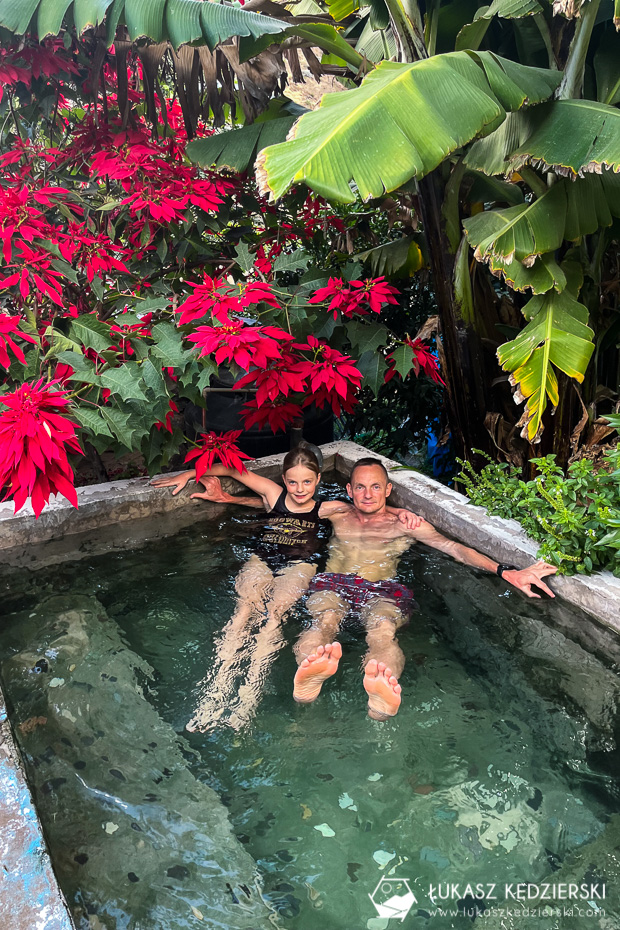 Po takiej wycieczce należy nam się porządny odpoczynek, a w takim miejscu to będzie czysta przyjemność. Nasz nocleg jest idealnie położony. Niesamowite widoki na ściany kanionu, dookoła mnóstwo zieleni i owocowych drzew: pomarańcze, awokado, limonki piękne kwiaty itd. Do tego ulubiony hamak Nadii, basen z termalną wodą i zimne piwko, którego normalnie nie piję, ale po takim spacerze uzupełniam kalorie i smakuje wybornie.