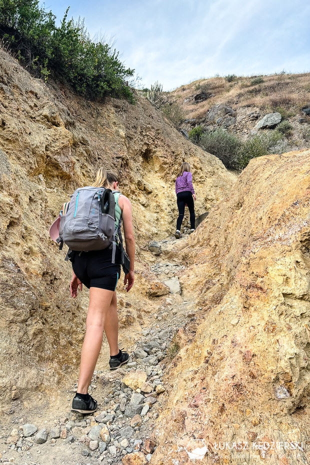 Startujemy o 7:15. Początek to piękne widoki na kanion i miejsce, gdzie spaliśmy oraz całą wczorajszą drogę. Do pokonania mamy prawie 850 metrów pod górę, aby później prawie tyle samo zejść do oazy. Sporo trasy wiedzie lokalną drogą, ale z pięknymi widokami. Przechodzimy przez wioskę Malata, a później mozolnie w dół.
