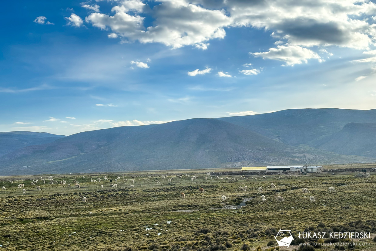 Za oknem obserwujemy niezliczone ilości zwierząt: alpaki, lamy, wiklinie. Nie jestem pewien, ale są to chyba wersje hodowlane. Trasa zajęła nam ponad 6 godzin, głównie ze względu na korki w mieście. W Arequipa przesiadamy się na nocny bus do….