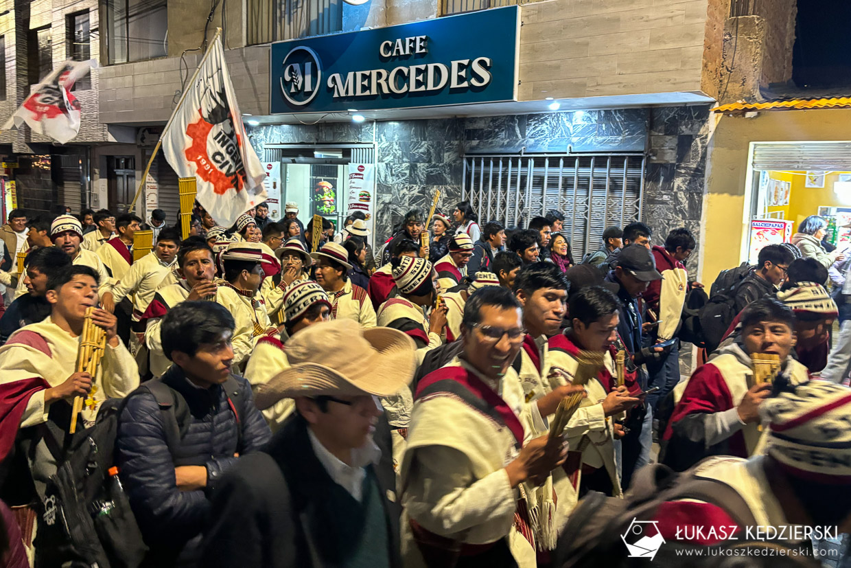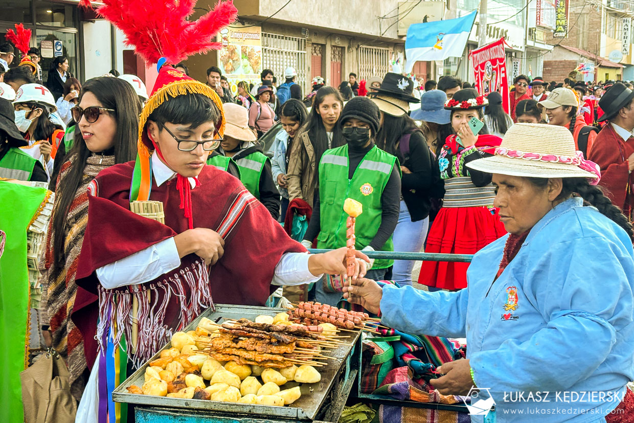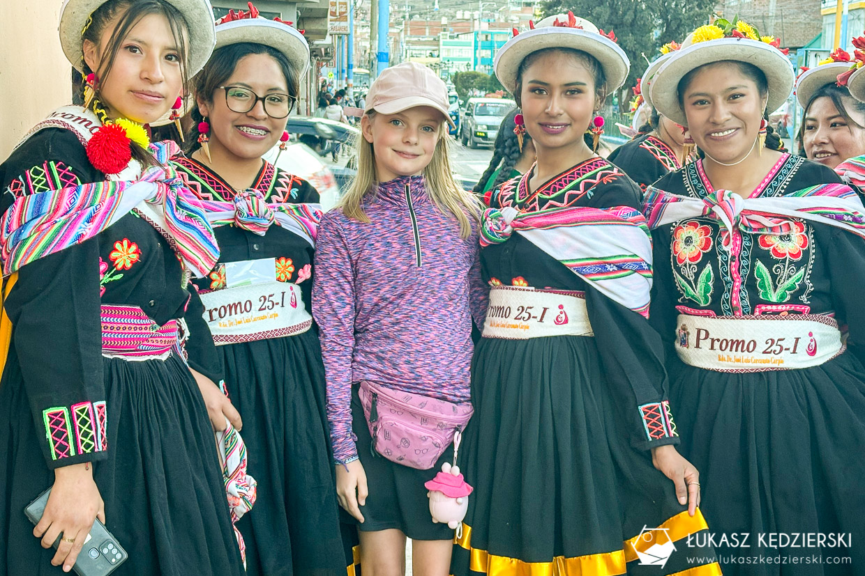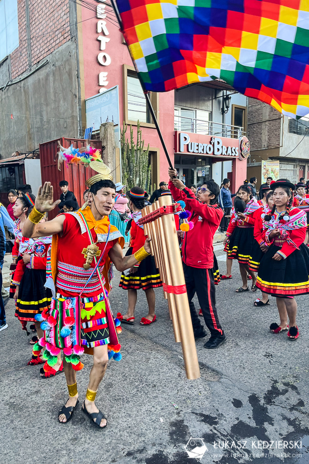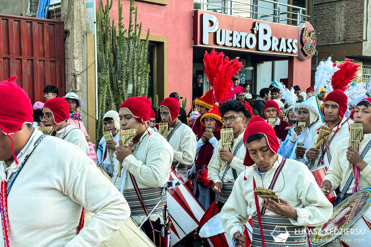 Po powrocie z wycieczki po jeziorze Titicaca mieliśmy trochę czasu do nocnego autobusu, więc poszliśmy w miasto. W Puno dzisiaj odbywała się fiesta uniwersytetu, takie nasze juwenalia. Na ulicach mnóstwo studentów poubieranych w lokalne stroje, dużo muzyki, kolorów i alkoholu. Wszyscy tańczyli, śpiewali i cieszyli się pięknym dniem robiąc przemarsz przez całe miasto.
