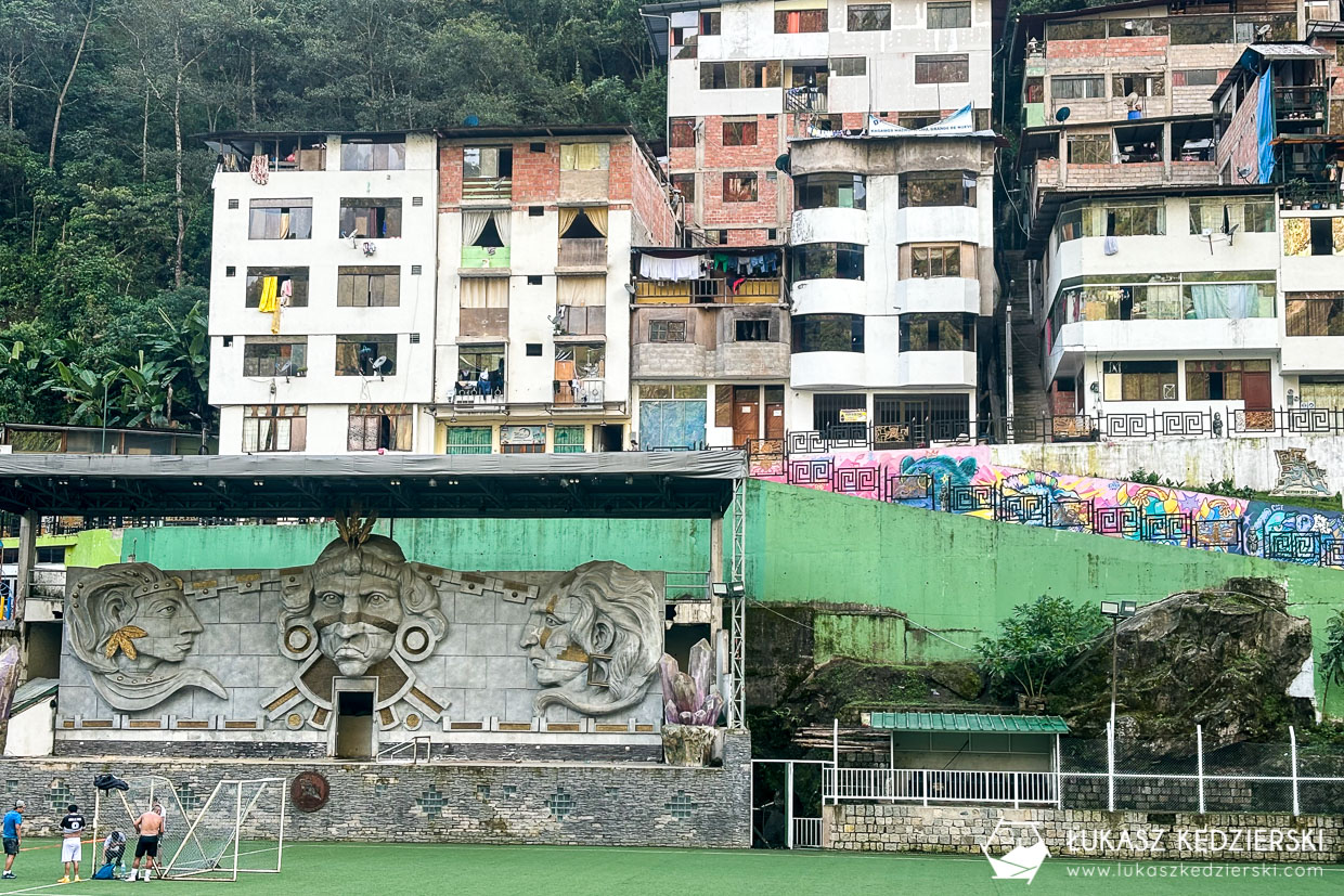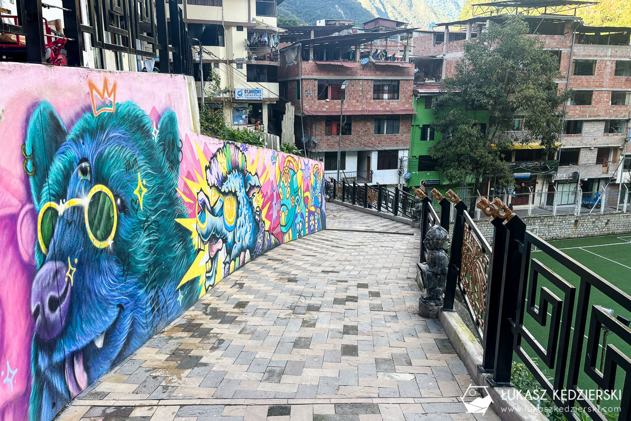 Dzisiaj wracamy do Cuzco. Rano jeszcze krótki spacer po niewielkiej wiosce Aguas Calientes, aby zobaczyć uliczki i zabudowania. Niewiele tu jest, głównie knajpki, sklepy z pamiątkami, stacja kolejowa oraz duży targ z bibelotami pod turystów. Ale też jest parę fajnych miejsc z muralami czy płaskorzeźbami w parku.