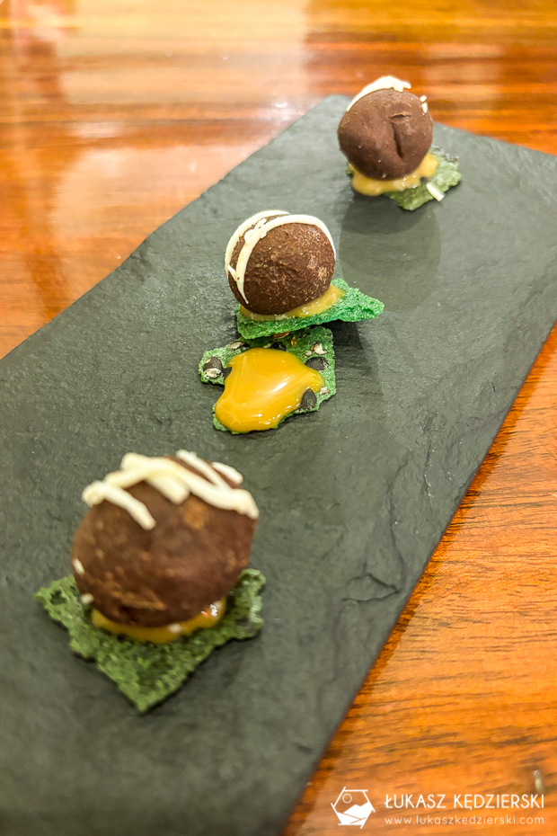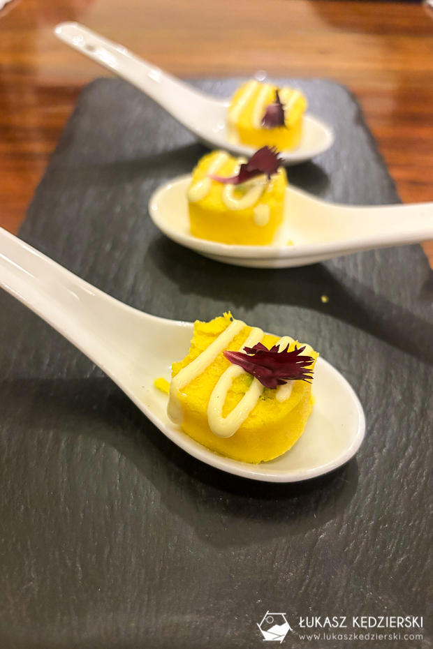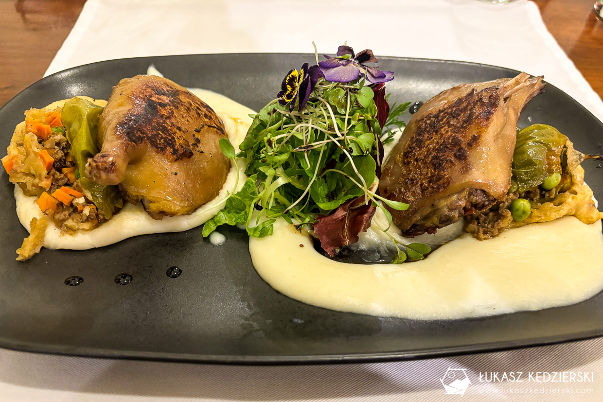 Poszliśmy do polecanej restauracji A Mi Manera i zamówiłem mniejszą porcję, czyli konfitowane nóżki świnki z dodatkami. A jak smakuje? Smakuje bardzo dobrze. Mięso jest mięciutkie, kruchutkie i bardzo smaczne. Jak miałbym porównać do czegoś, co znam, to może smak najbliżej przypomina królika?